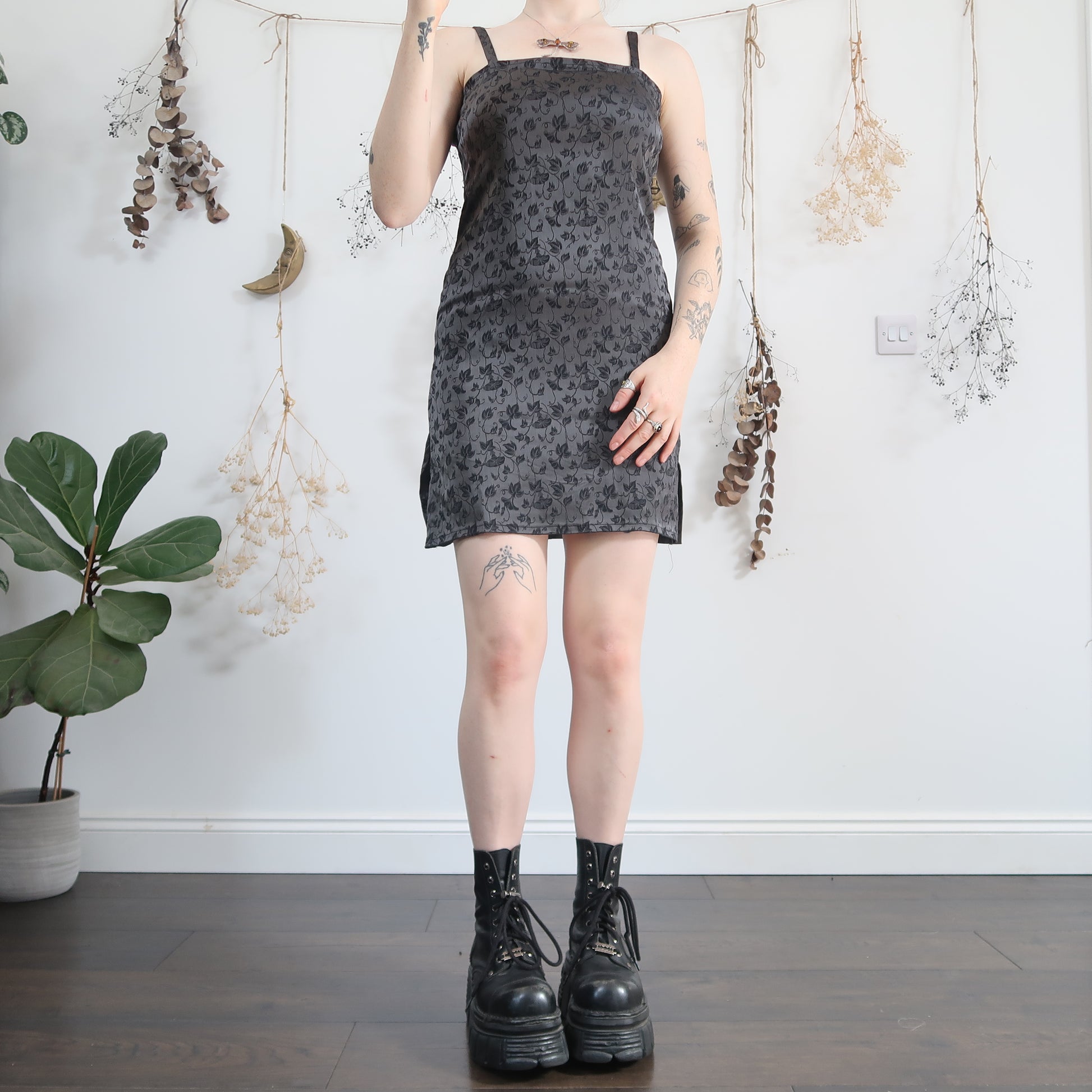 Vintage classic 90s metallic grey floral mini dress with side slits