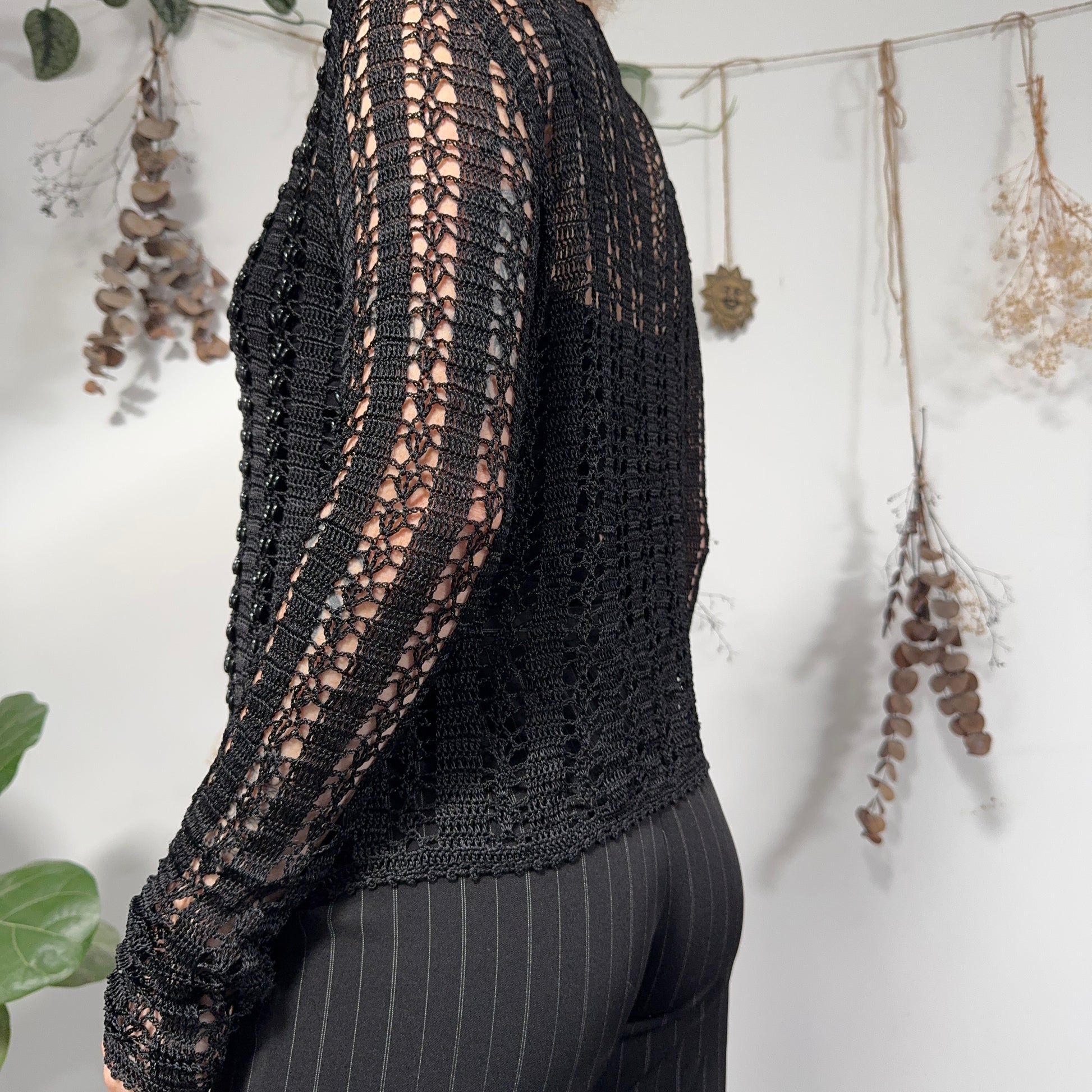 Black beaded crochet cardigan - size M/L