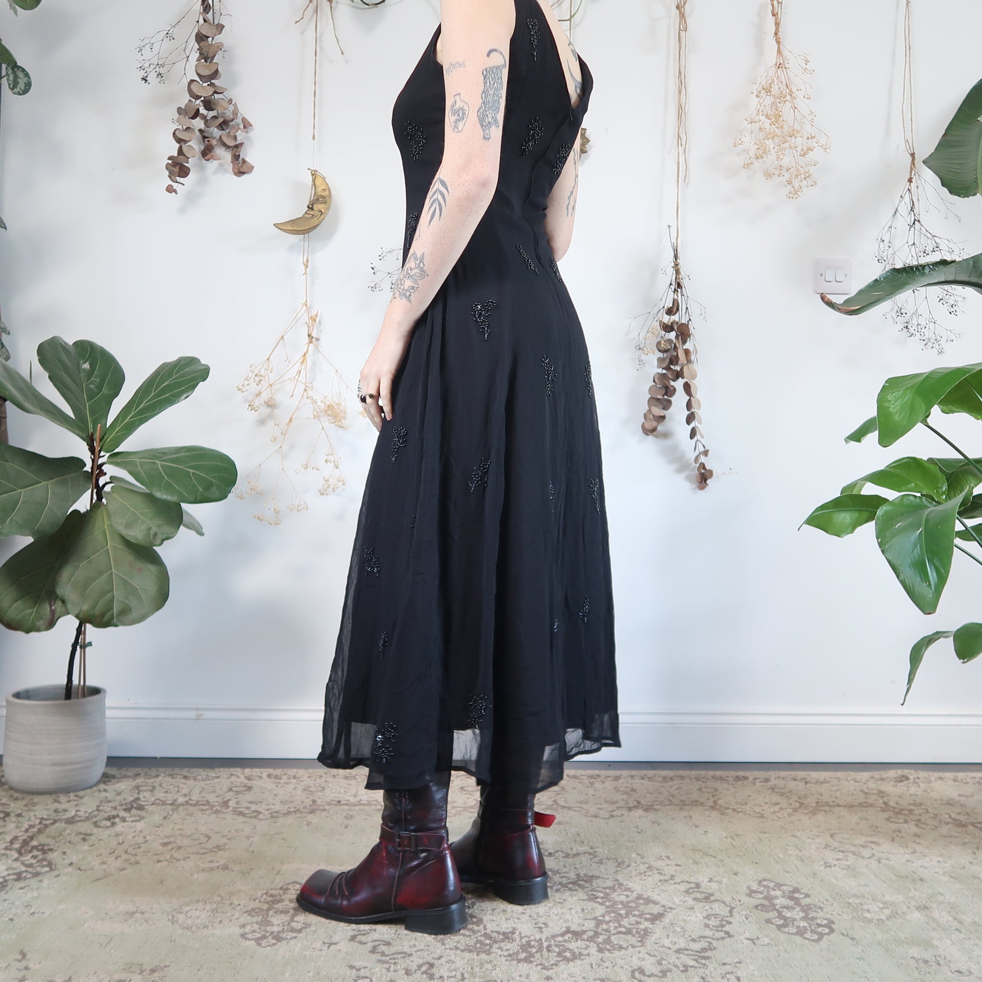 Vintage black maxi dress with beaded detail