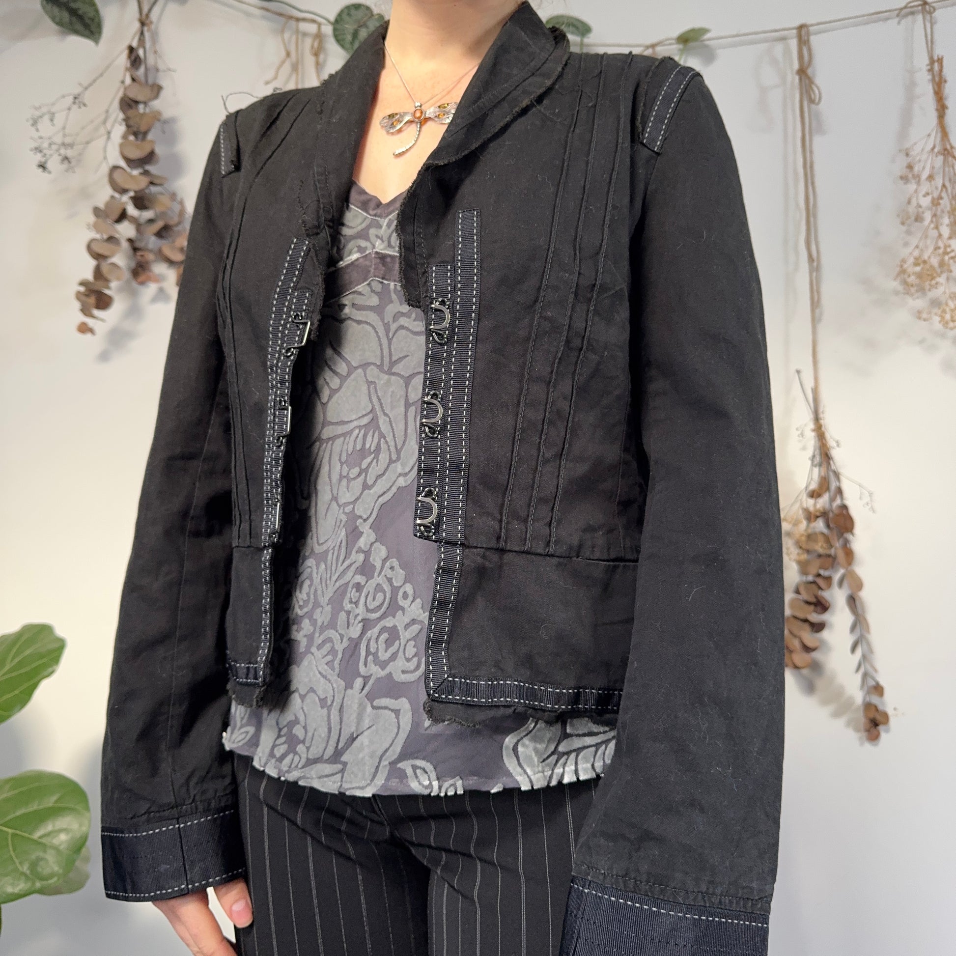 Vintage black chunky hook and eye jacket with white contrast stitching