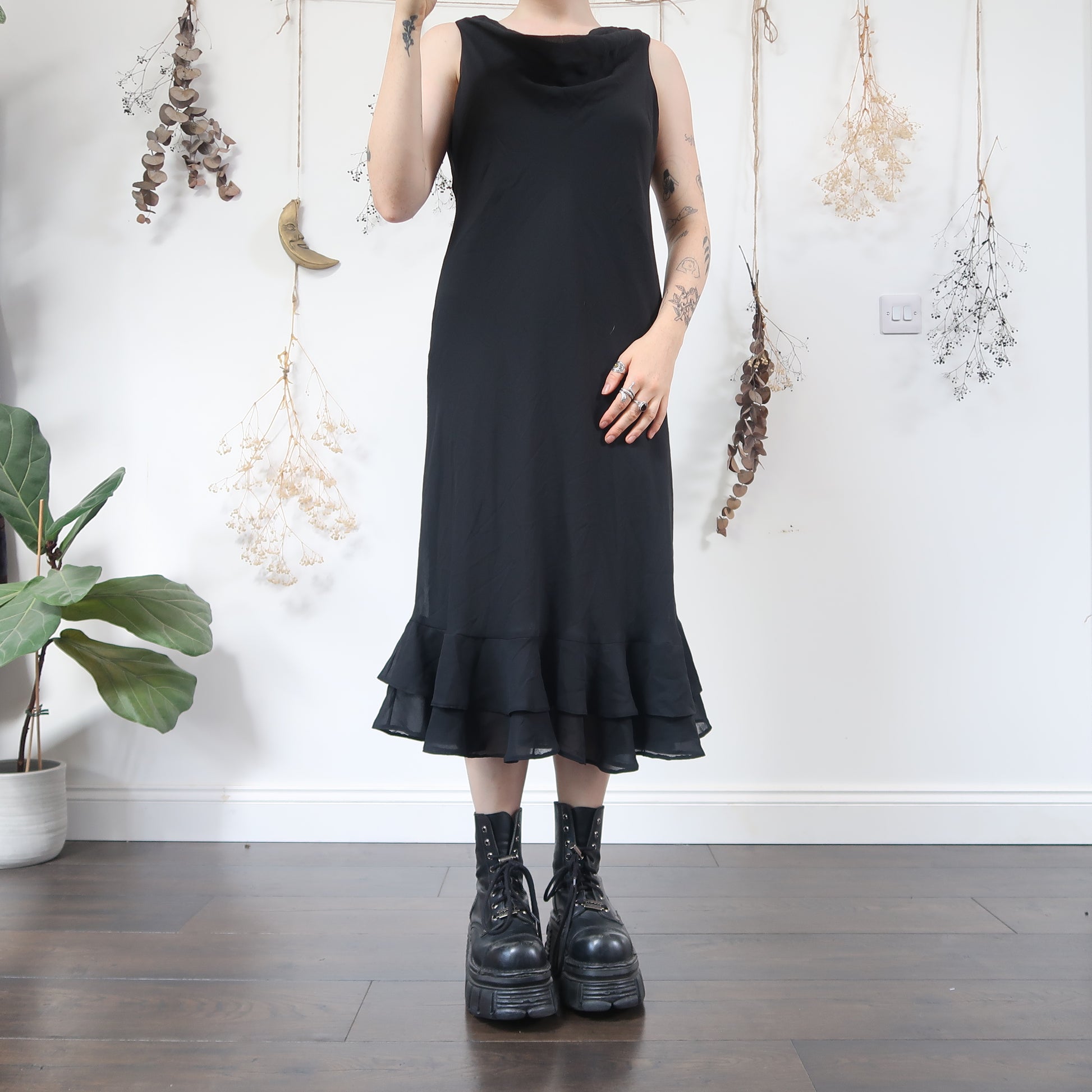 Vintage black floaty maxi dress with a cowl neck