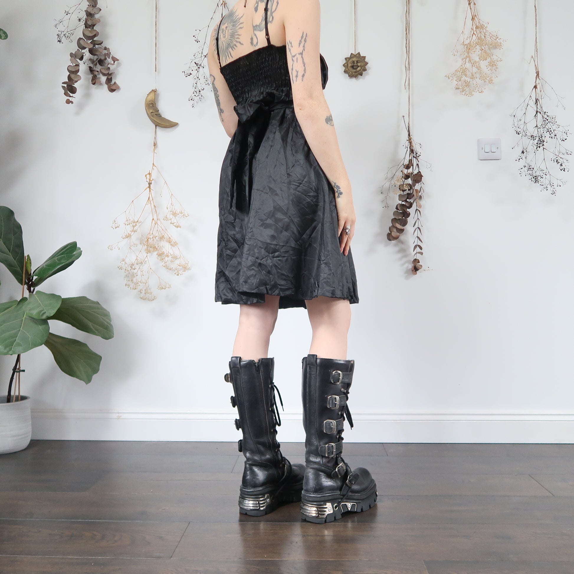 Vintage black A line midi dress, ties at the back