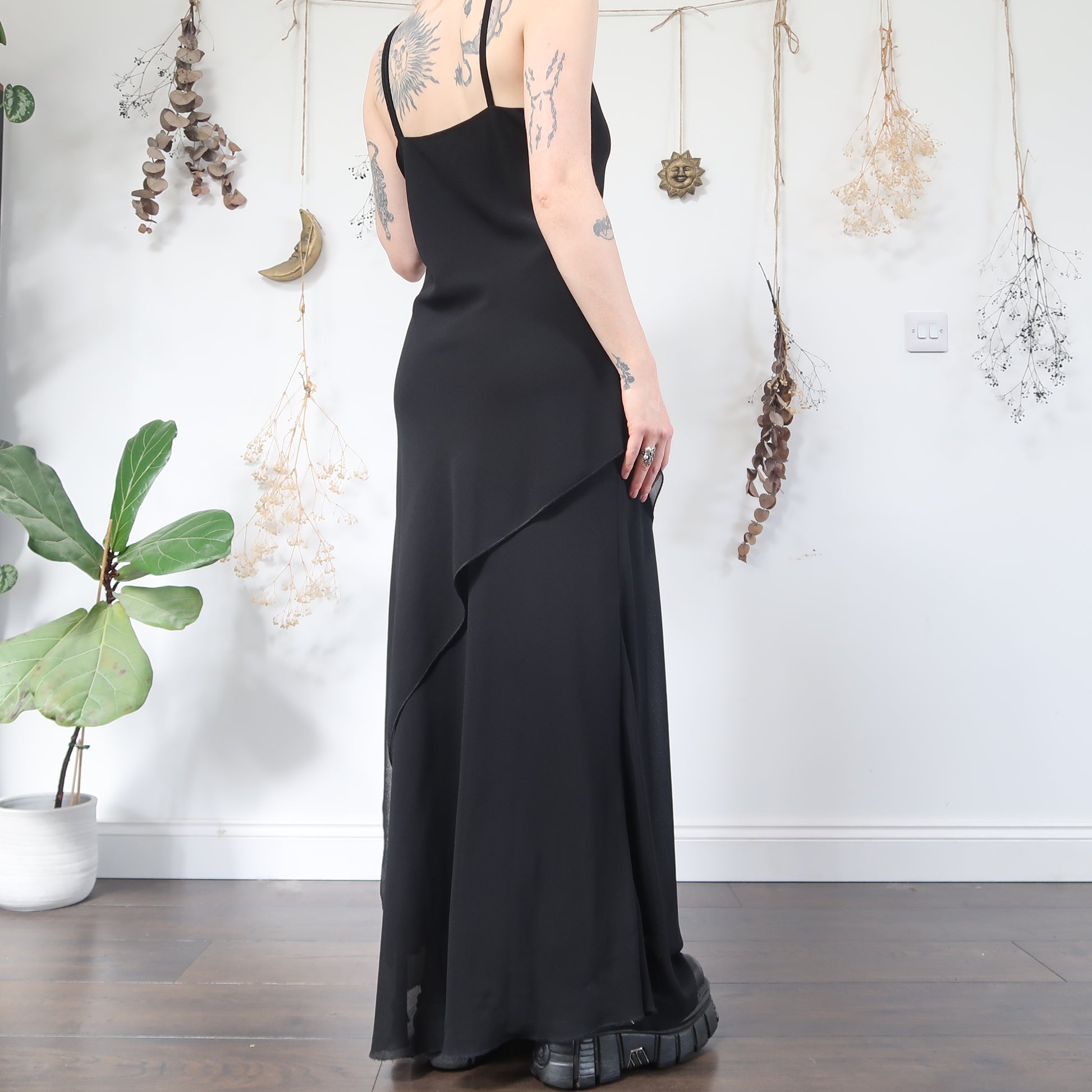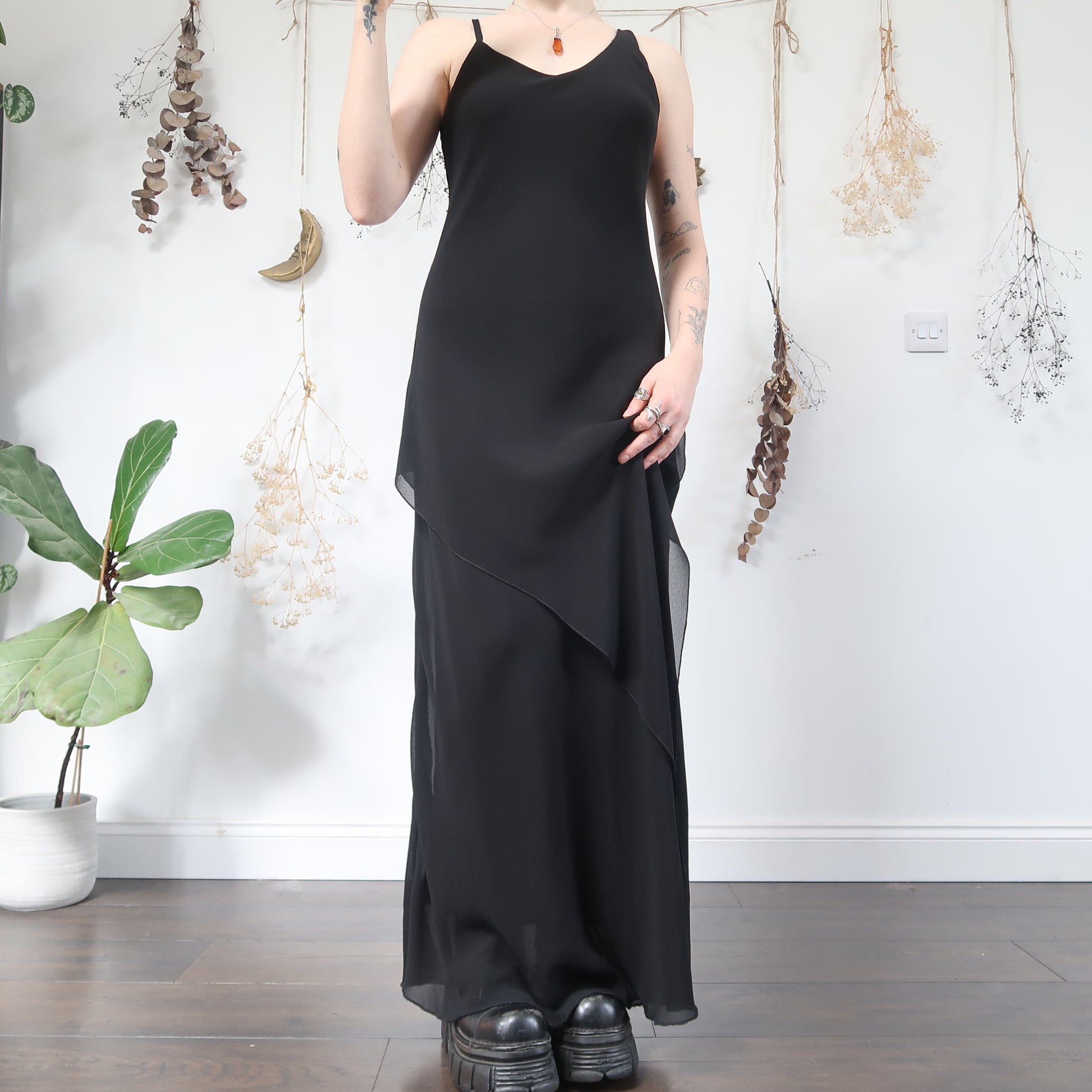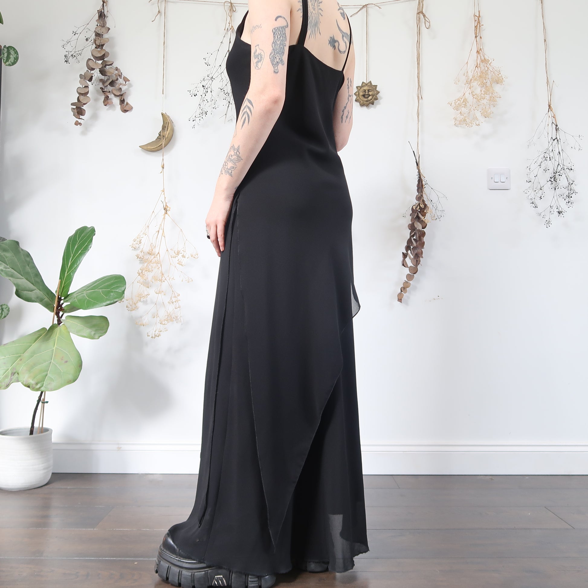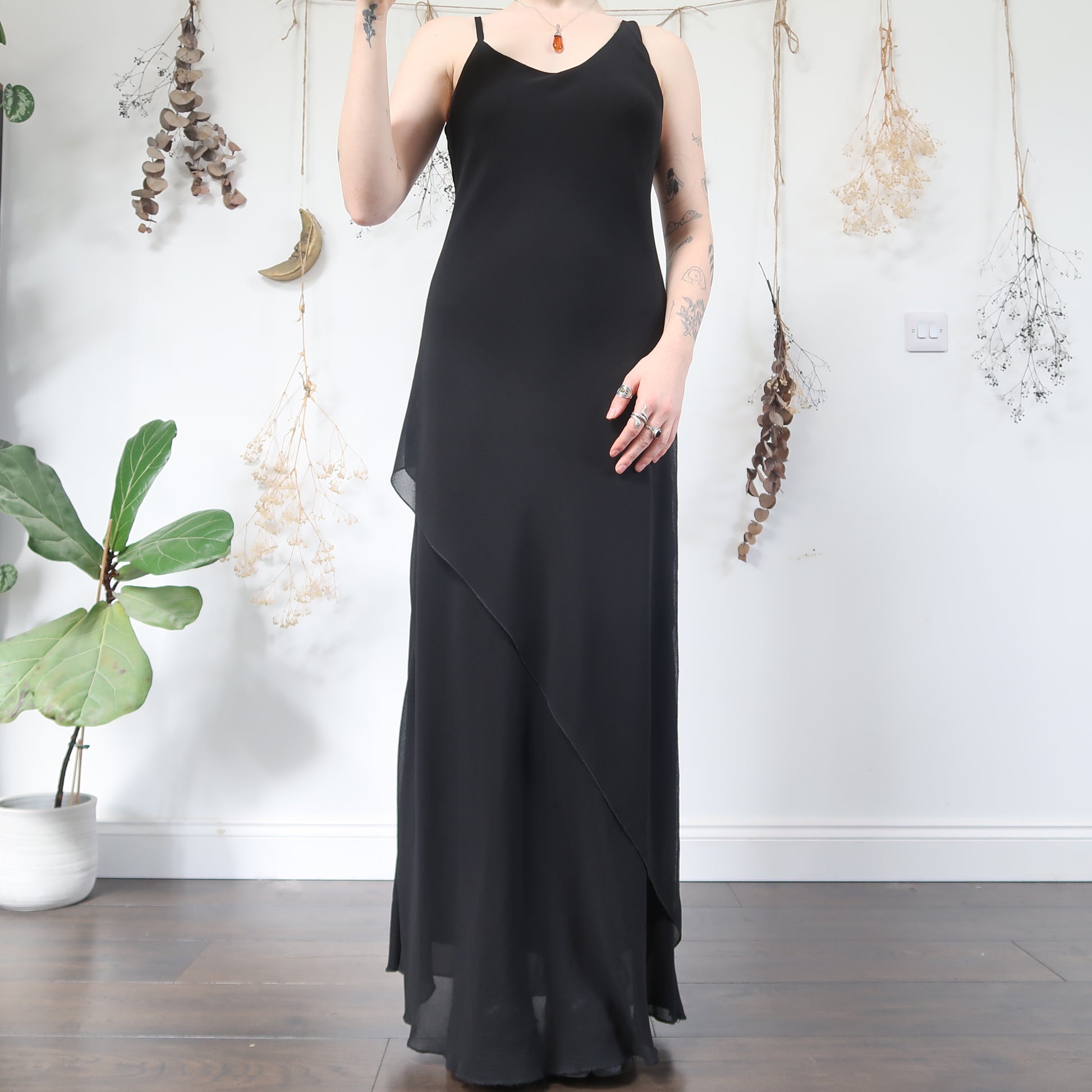 Vintage black evening dress with asymmetric straps and an asymmetric layer
