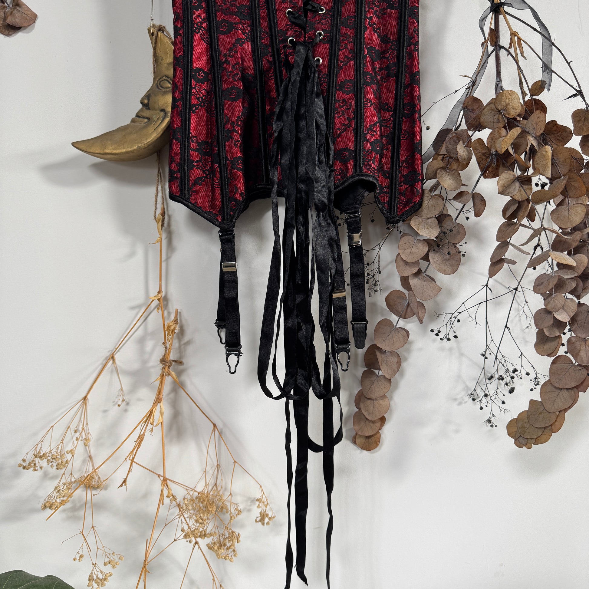 Black and red lace corset
