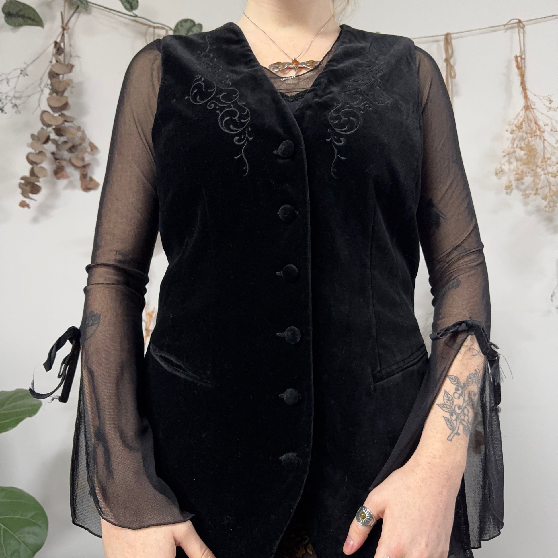 Vintage Laura Ashley black velvet waistcoat with embroidered detail