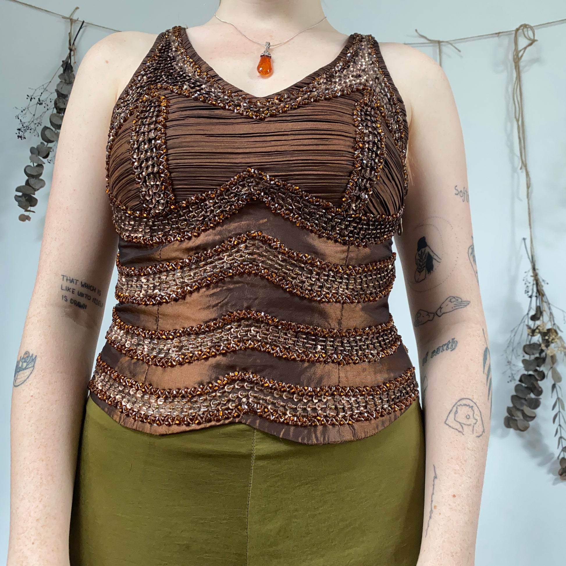 Vintage coppery brown beaded top. Was a nice snug fit on a size 10