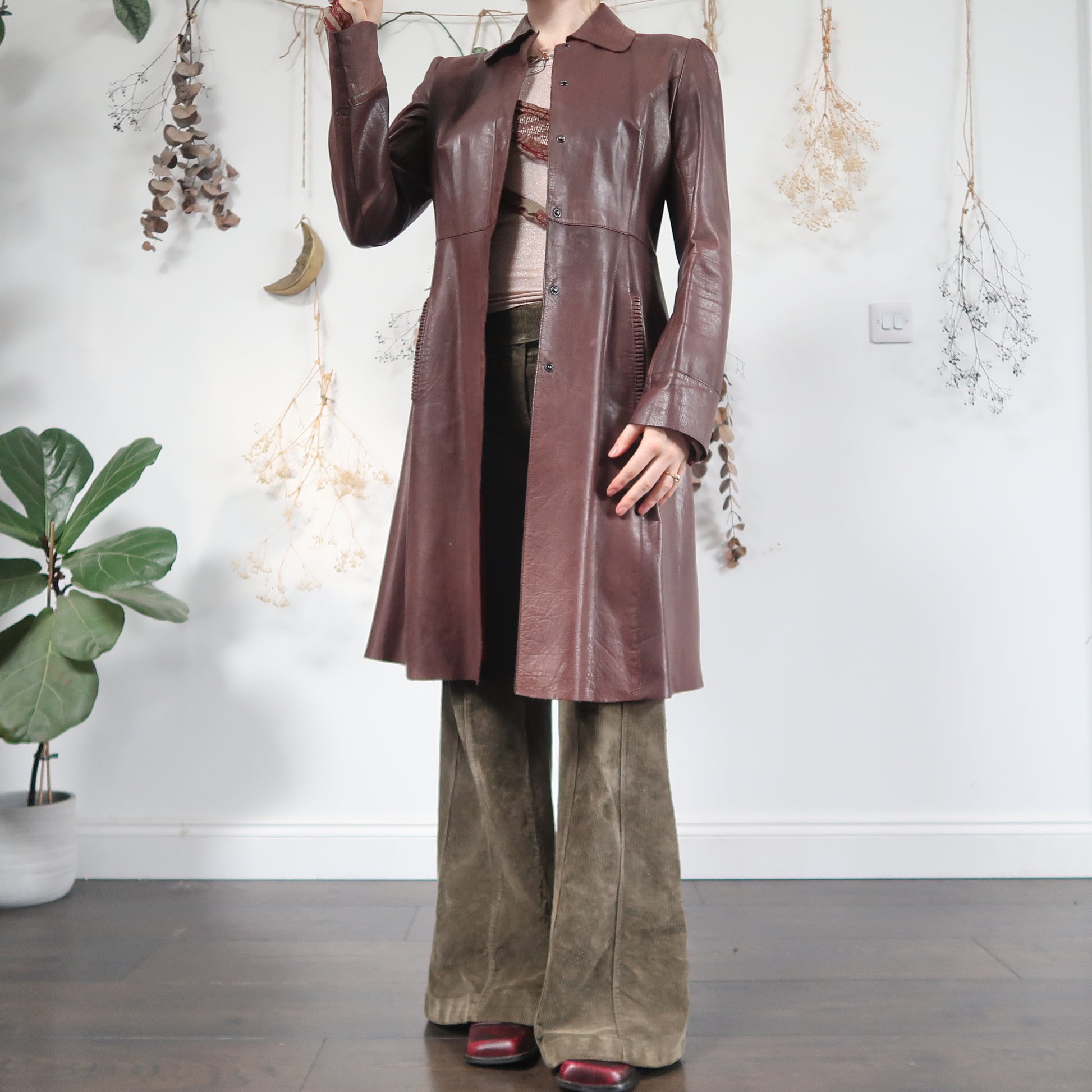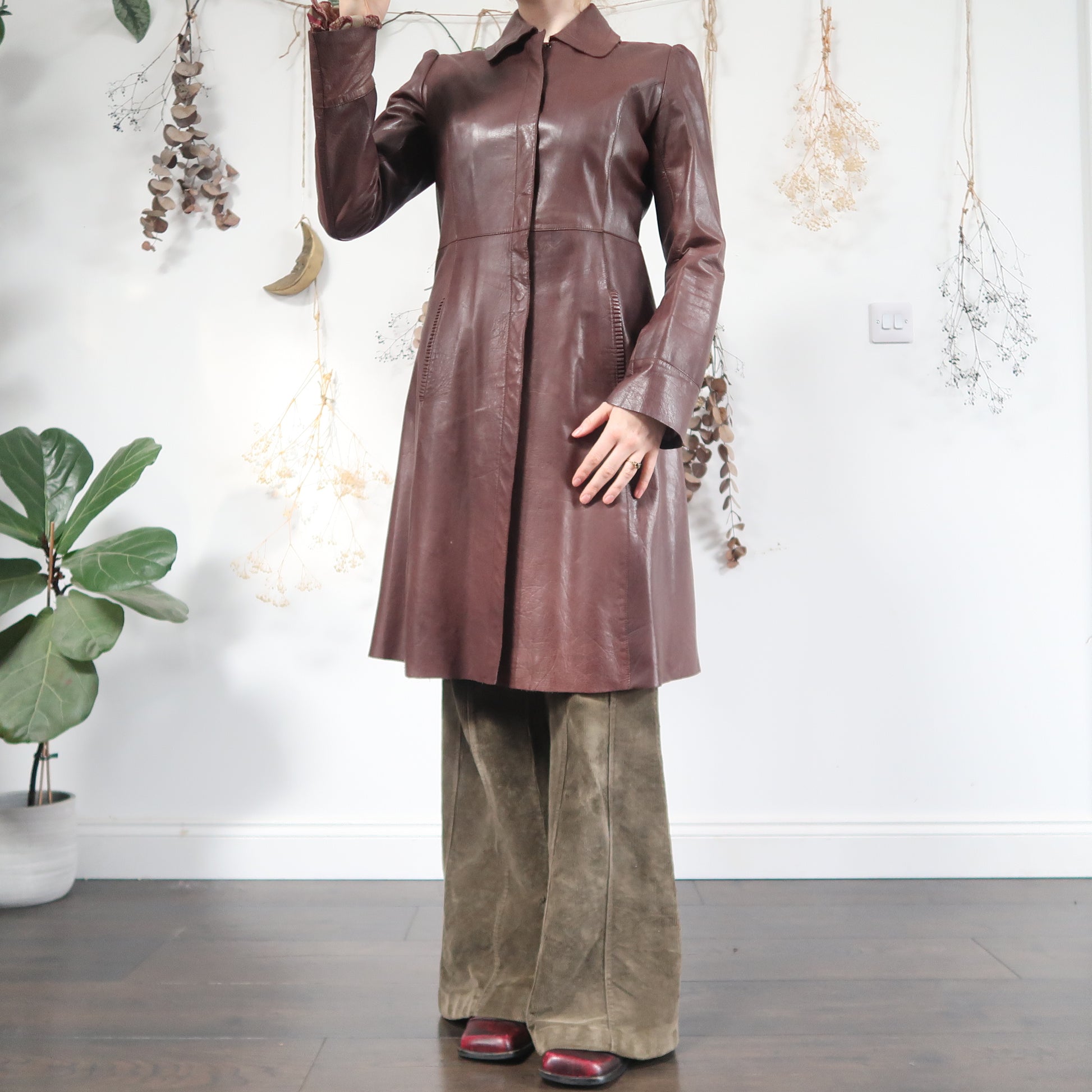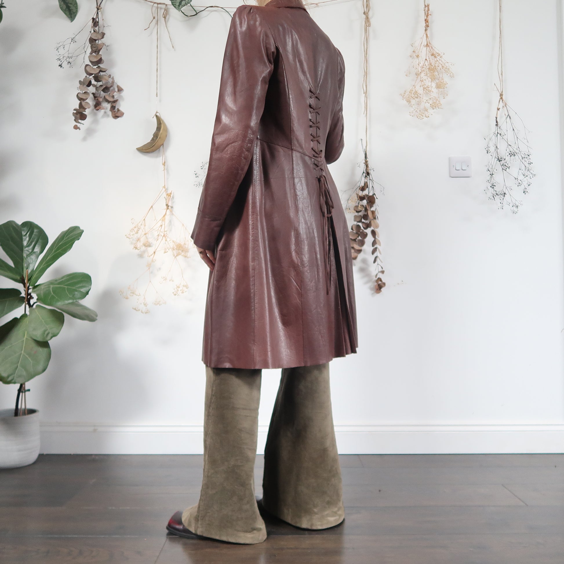 Vintage super soft brown leather mid length jacket, lace up corset back detail. Fasens by poppers. Gorgeous quality and super unique piece
