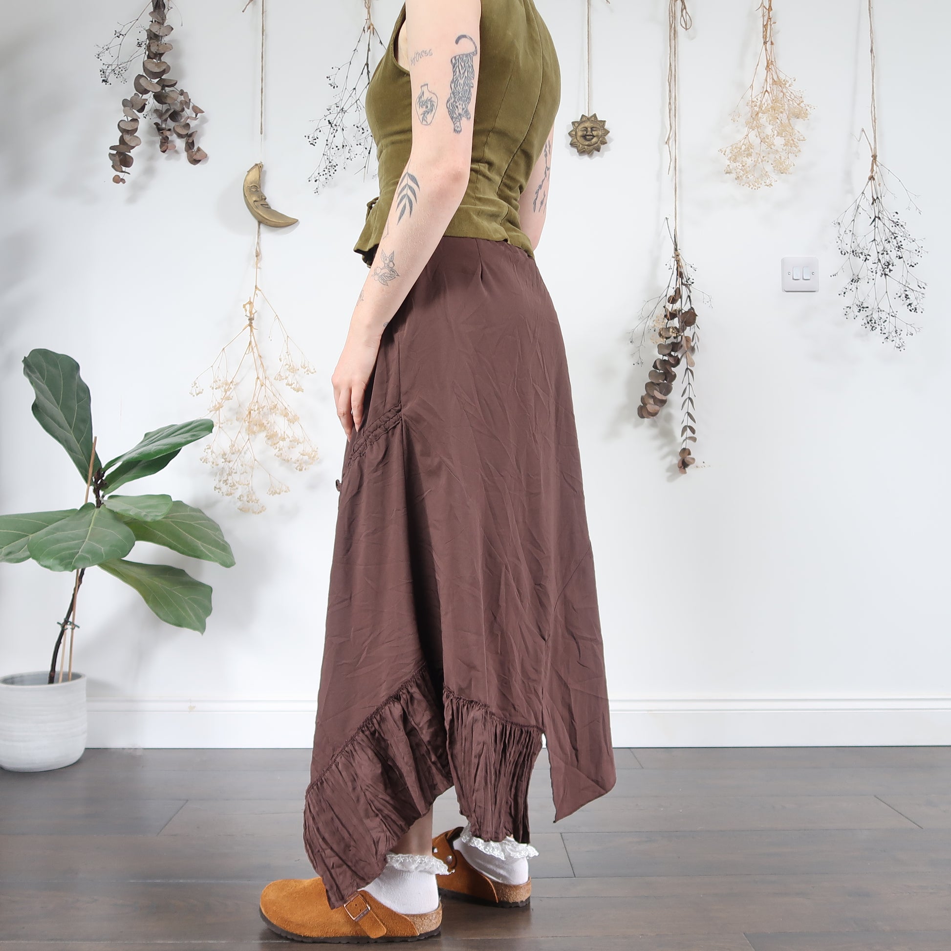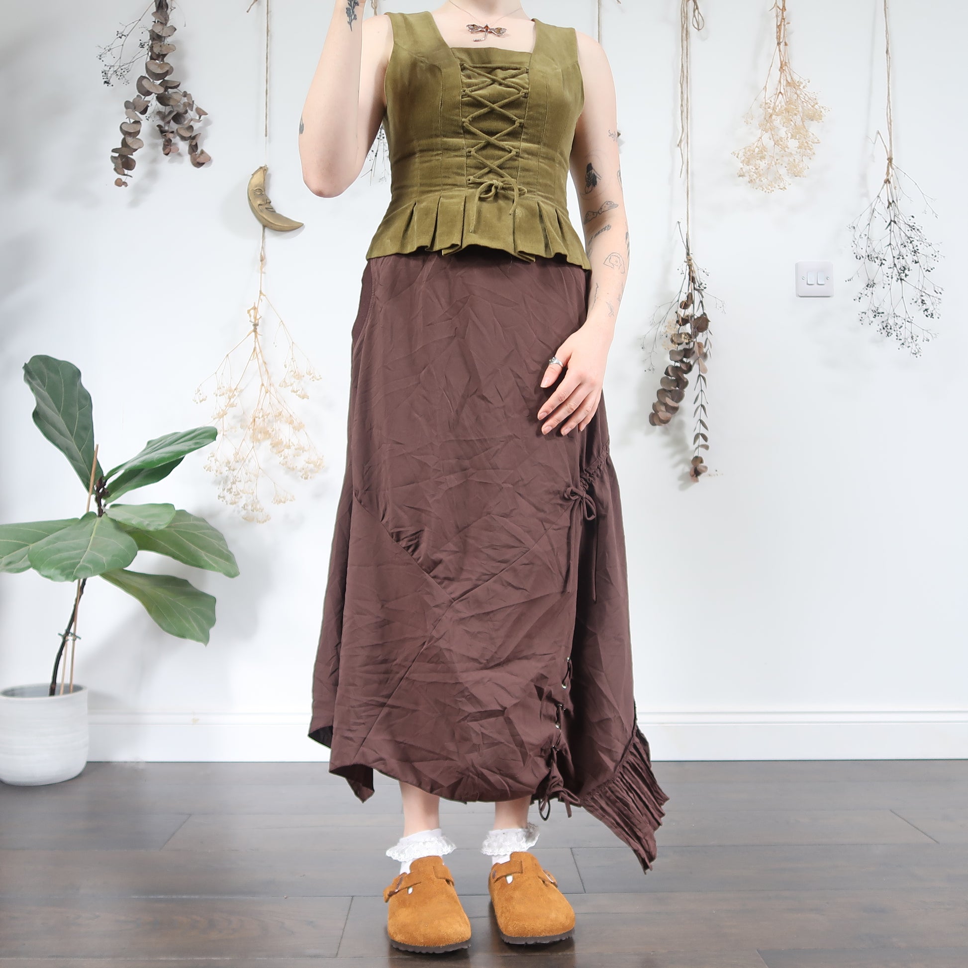 Vintage brown maxi skirt with adjustable ruching and lace up detail