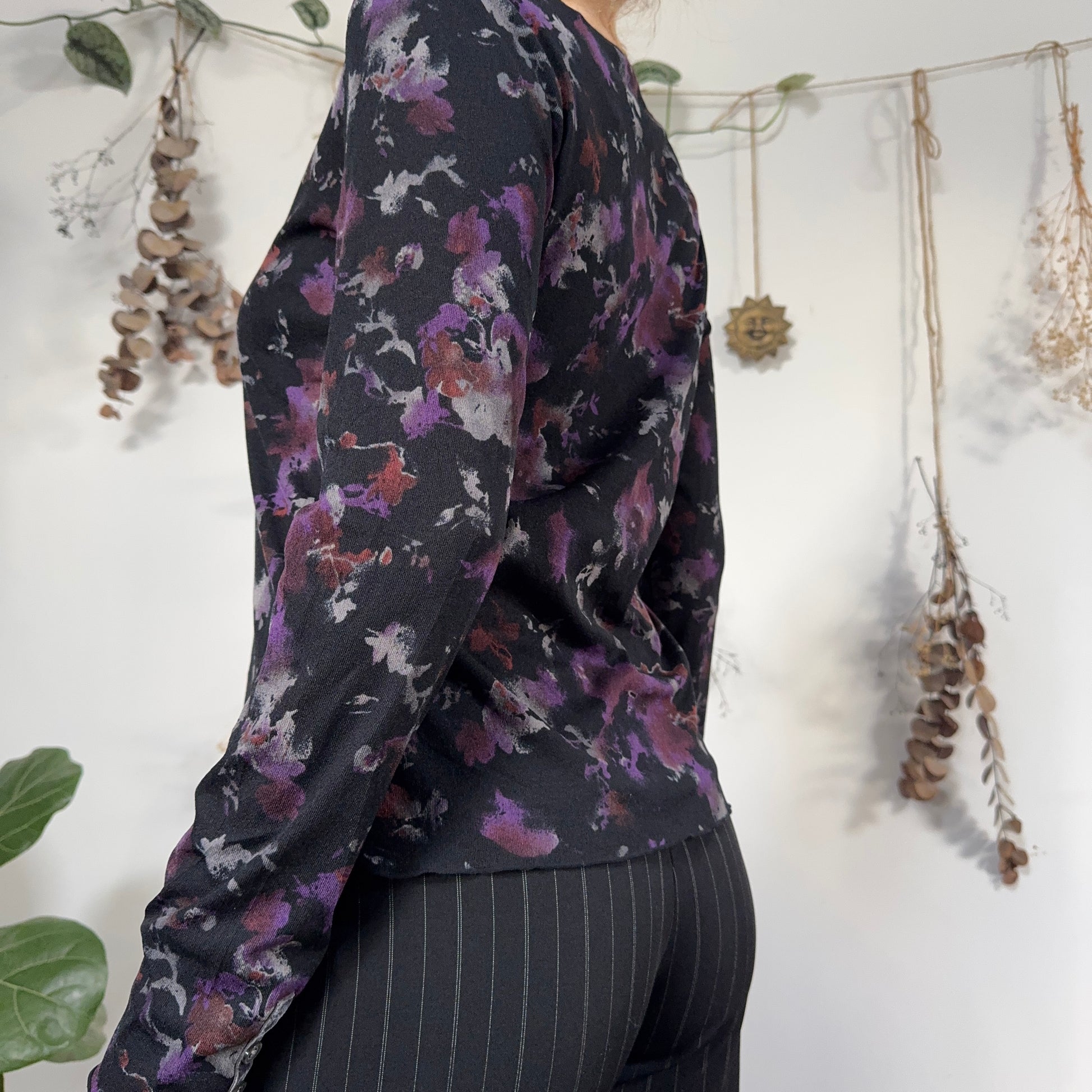 Vintage button down purple mesh top with a velvet ribbon trim