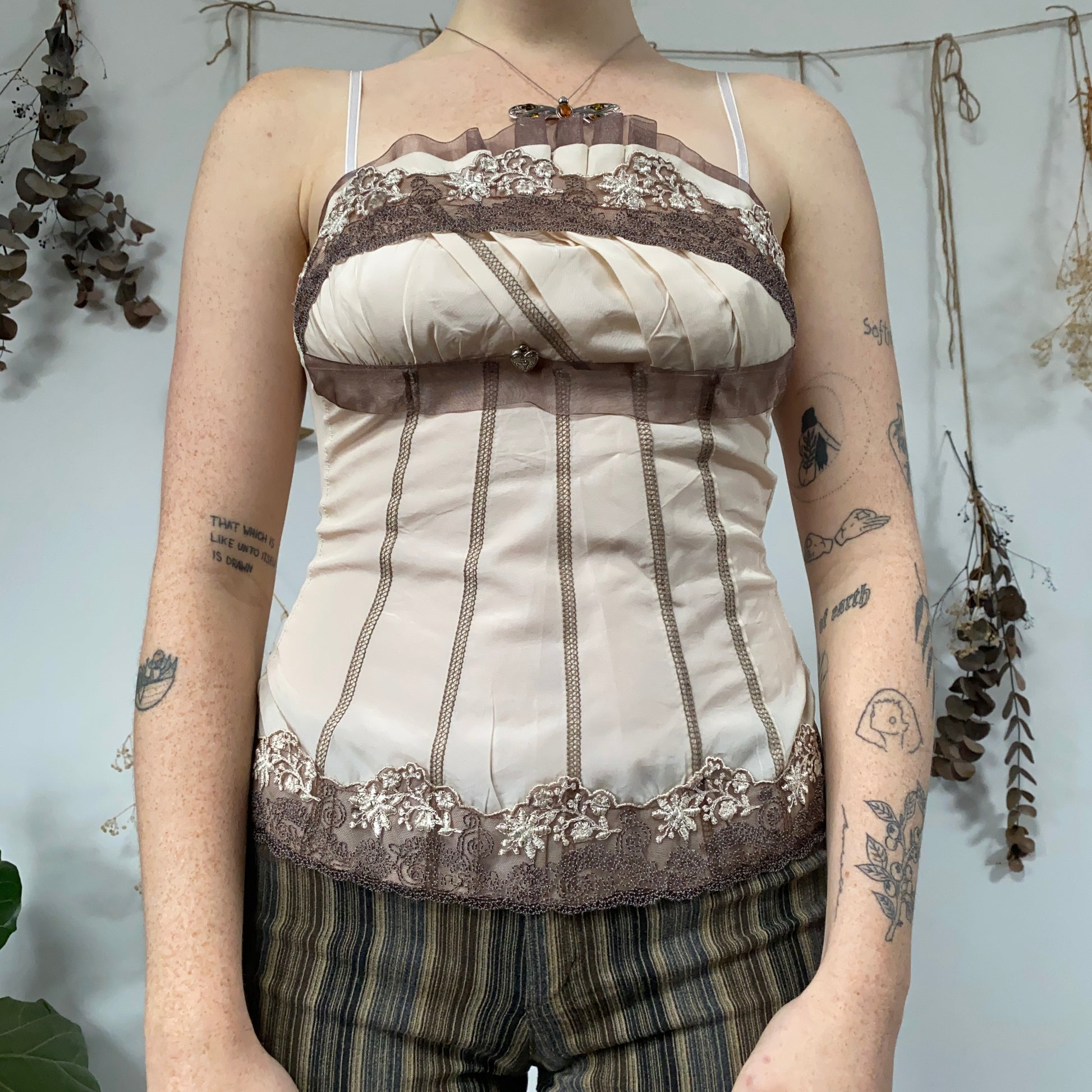 Vintage cream mauve structured cami with a mesh back and adjustable straps