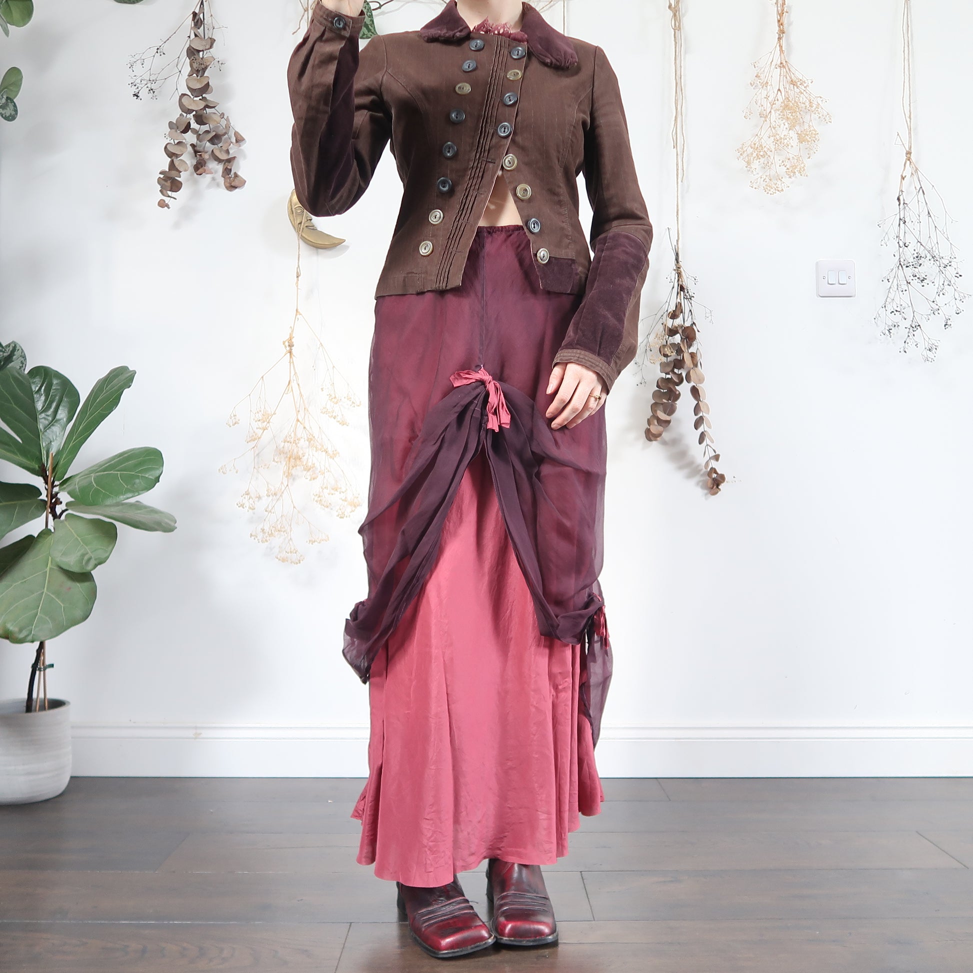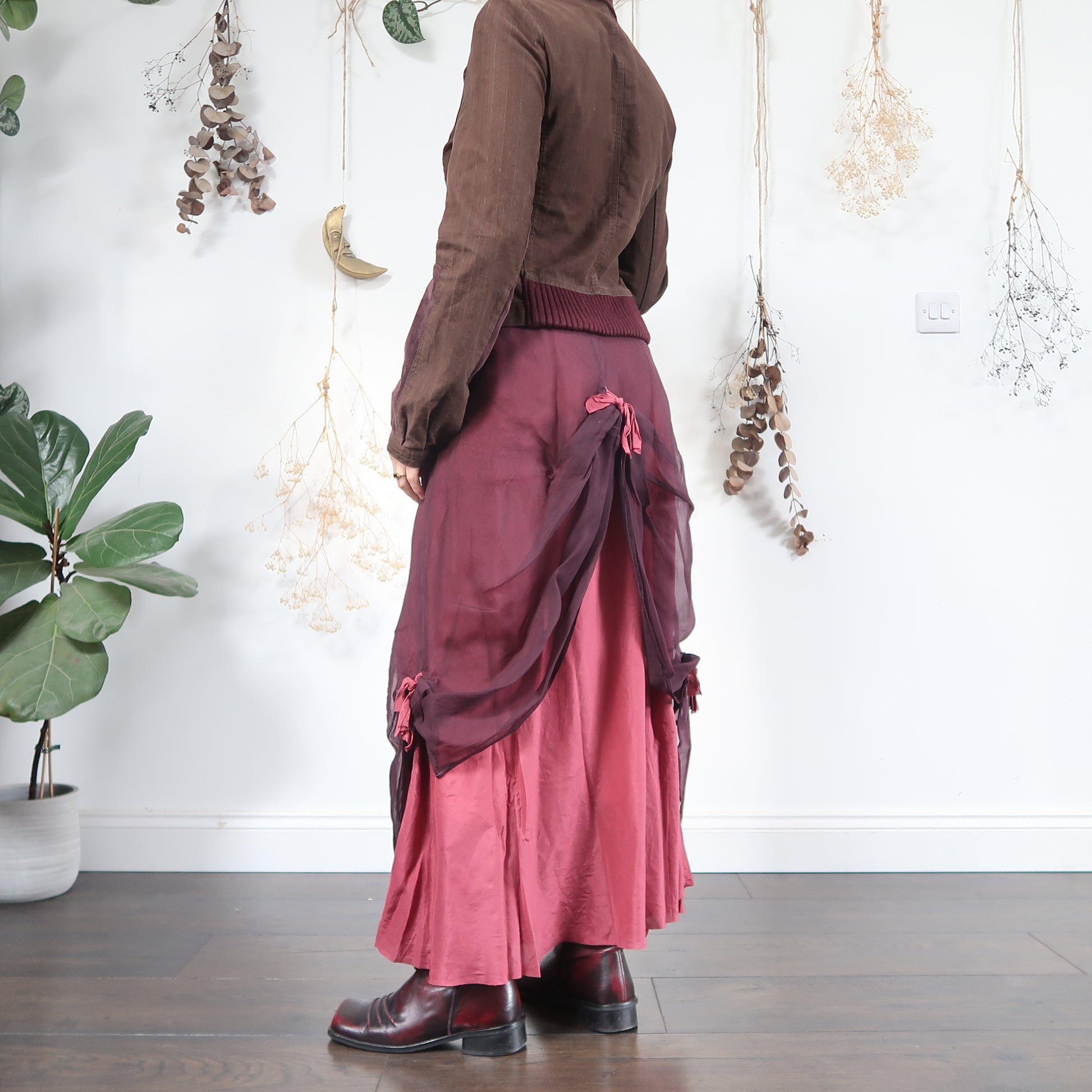 Vintage Out of Xile silk purple maxi skirt with ruched drapery detail