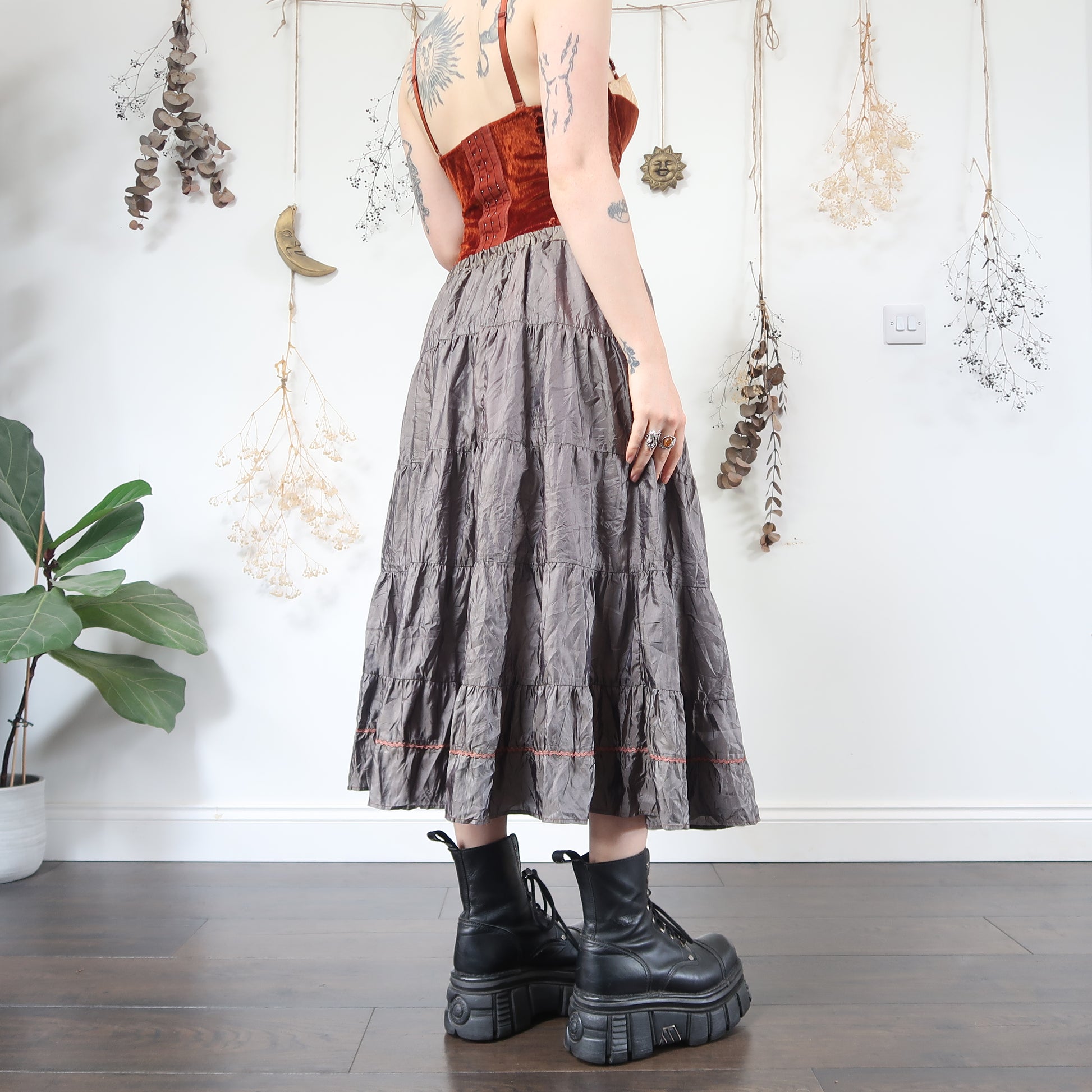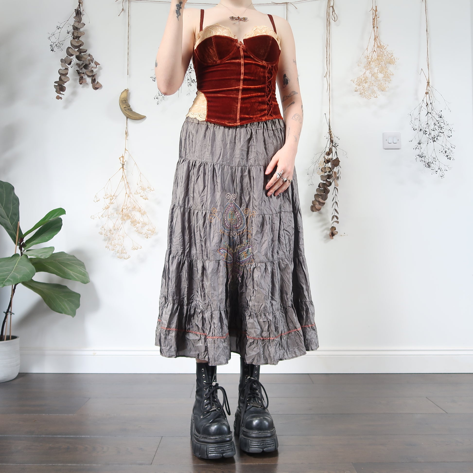 Vintage tiered skirt with embroidered detail
