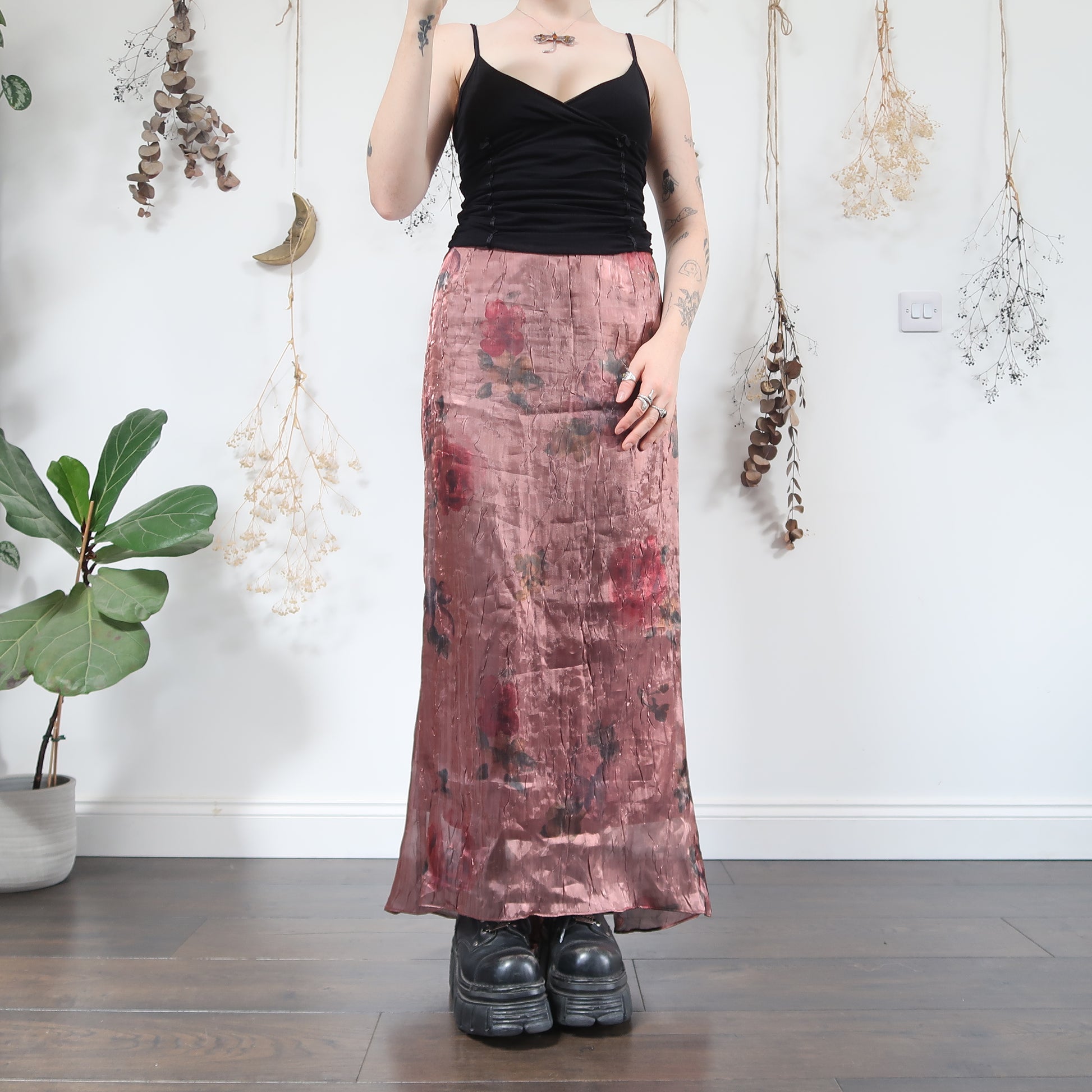 Vintage metallic coppery floral maxi skirt