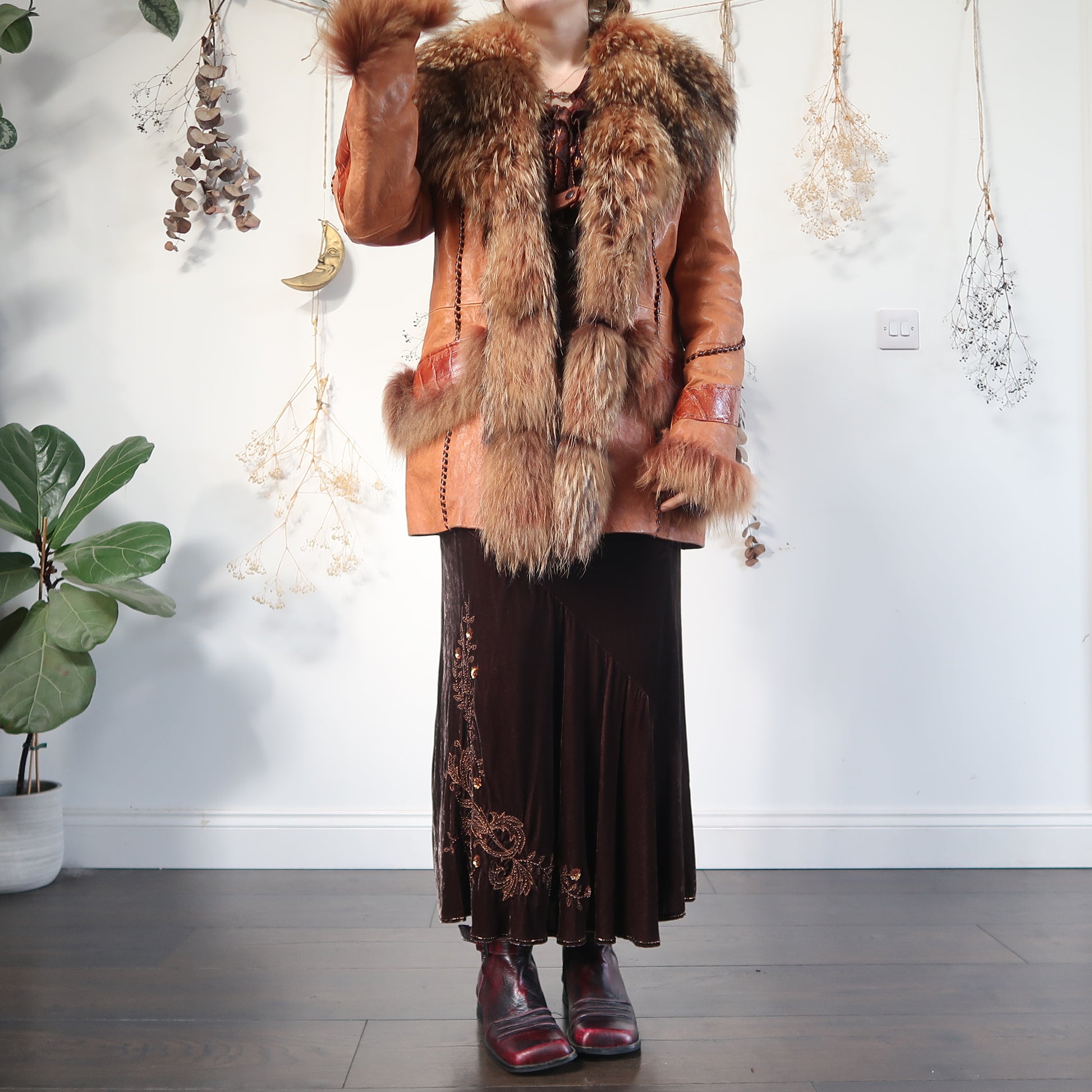 Vintage Italian leather coat with real fur trim, super special and rare, in gorgeous condition