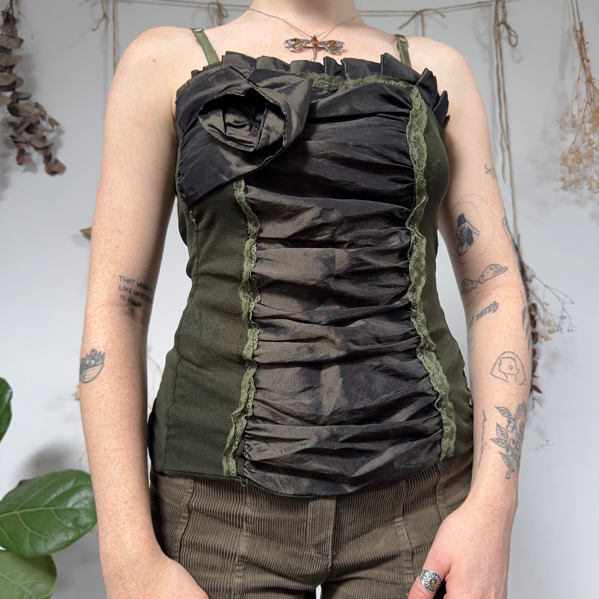 Green iridescent ruffle cami - size S