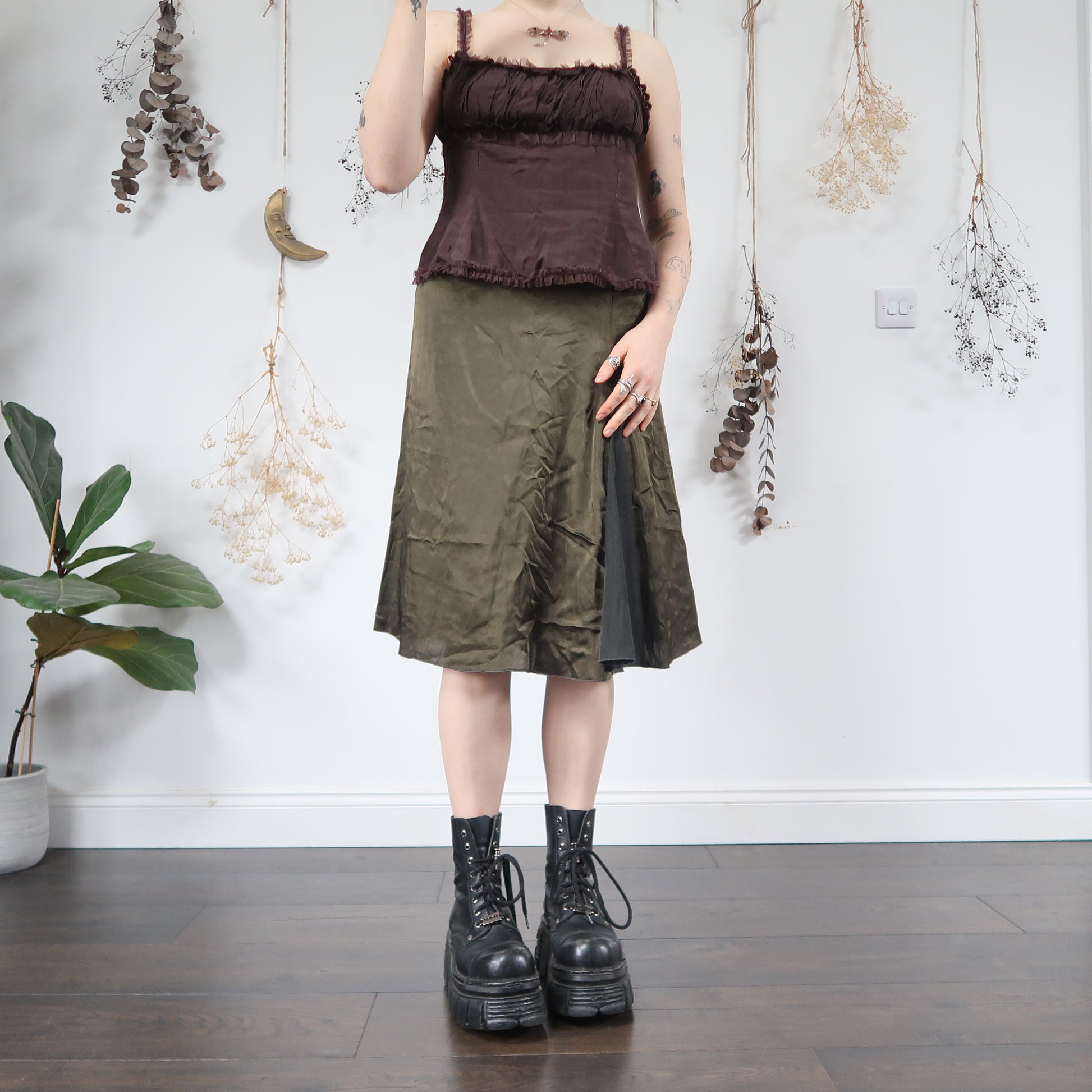 Vintage Miss Sixty khaki midi skirt with a fine corduroy pleat