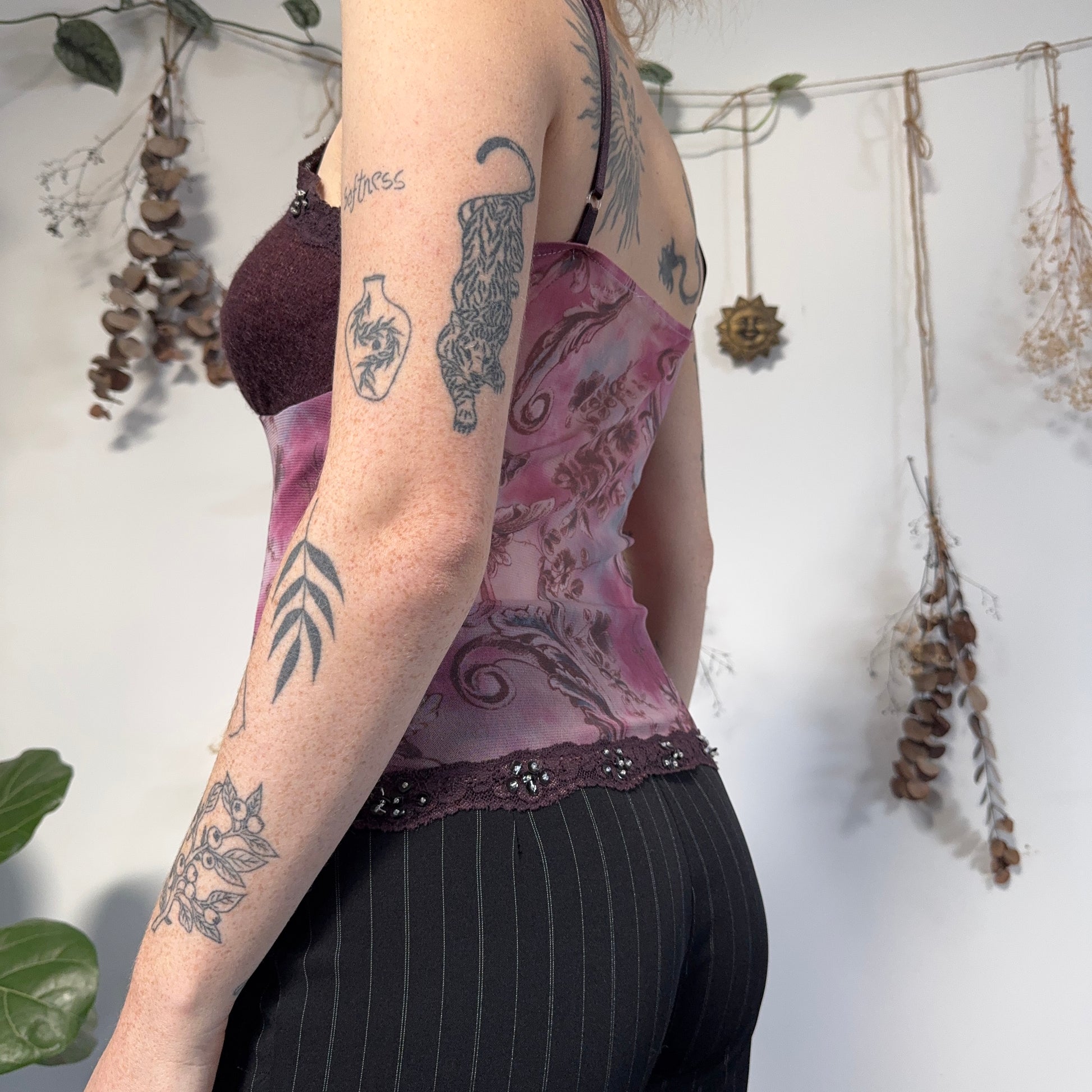 Vintage purple knit and mesh cami and wrap cardigan two piece set