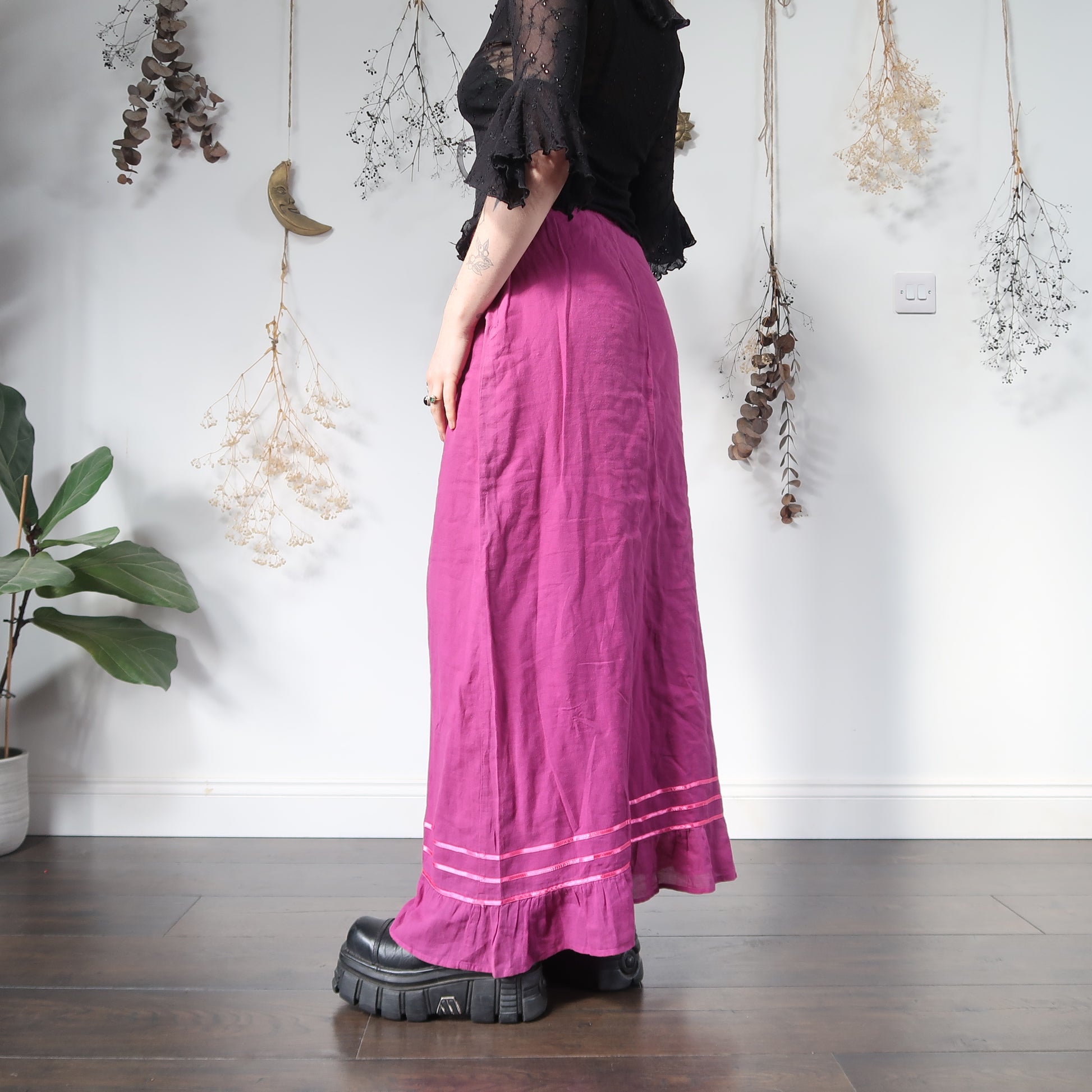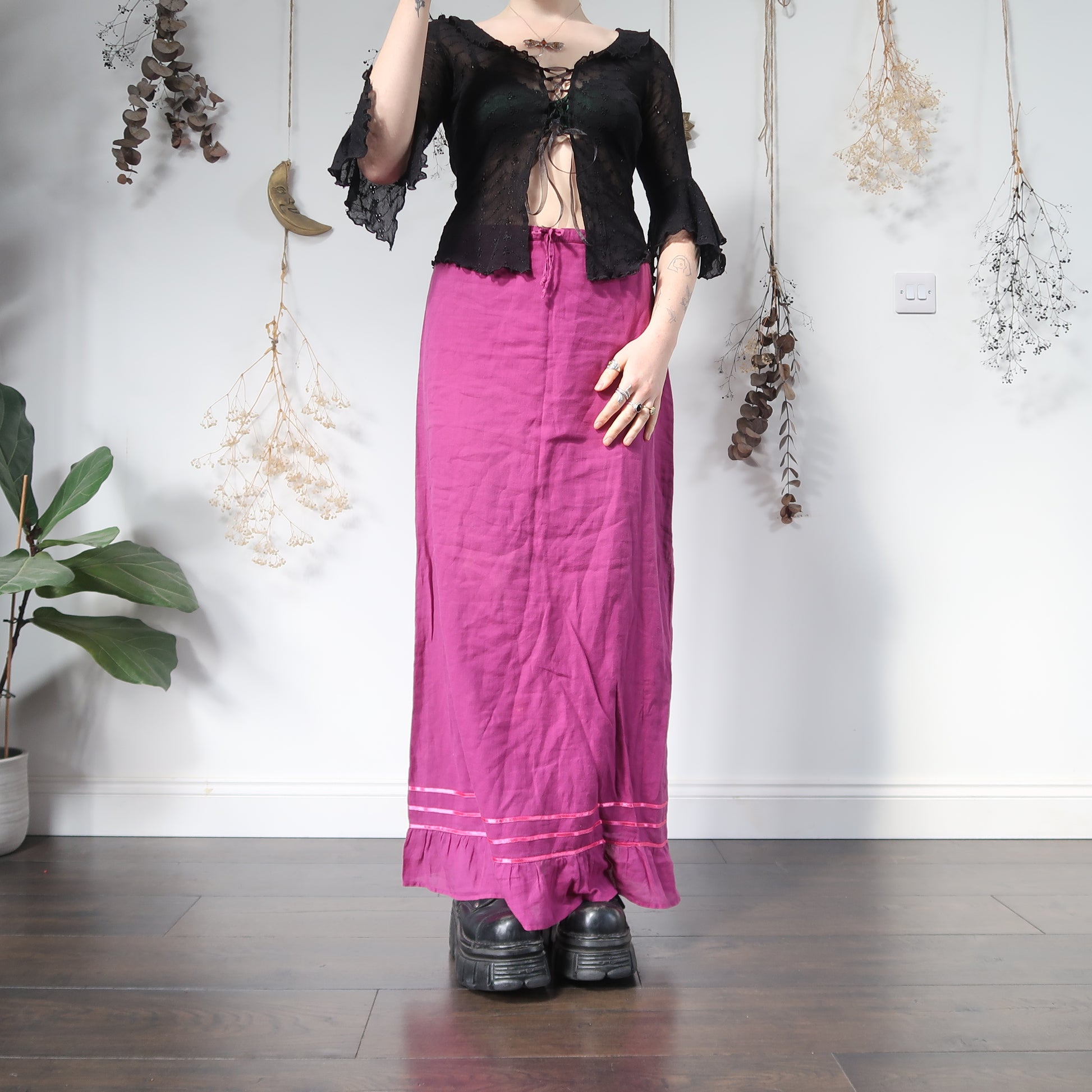 Vintage Kookai purple maxi skirt, super soft fabric, has a drawstring waist and side zip