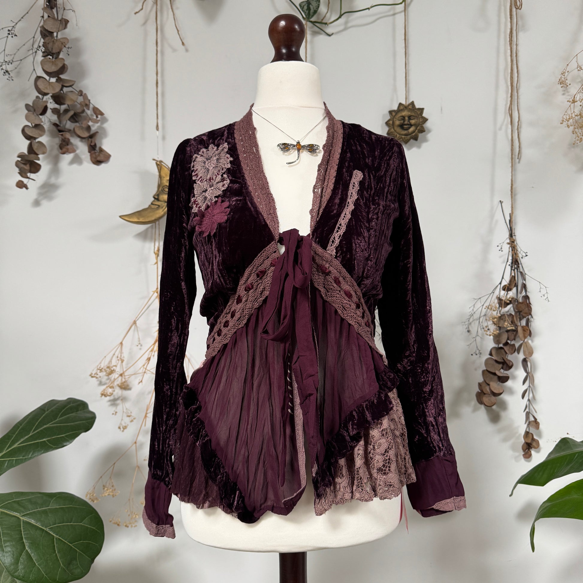 Stunning vintage purple velvet tie up blouse, truly the perfect whimsical top
