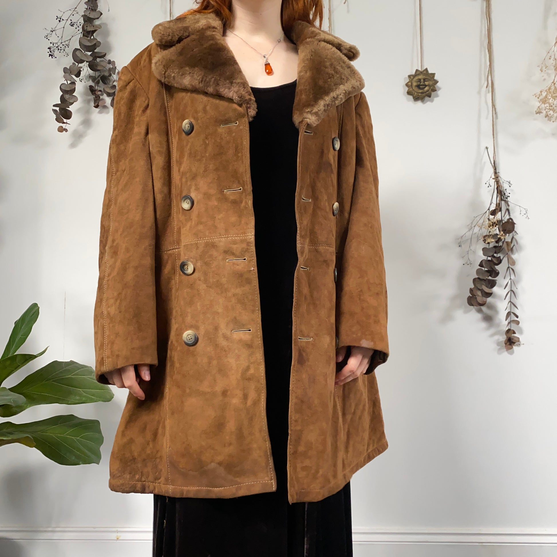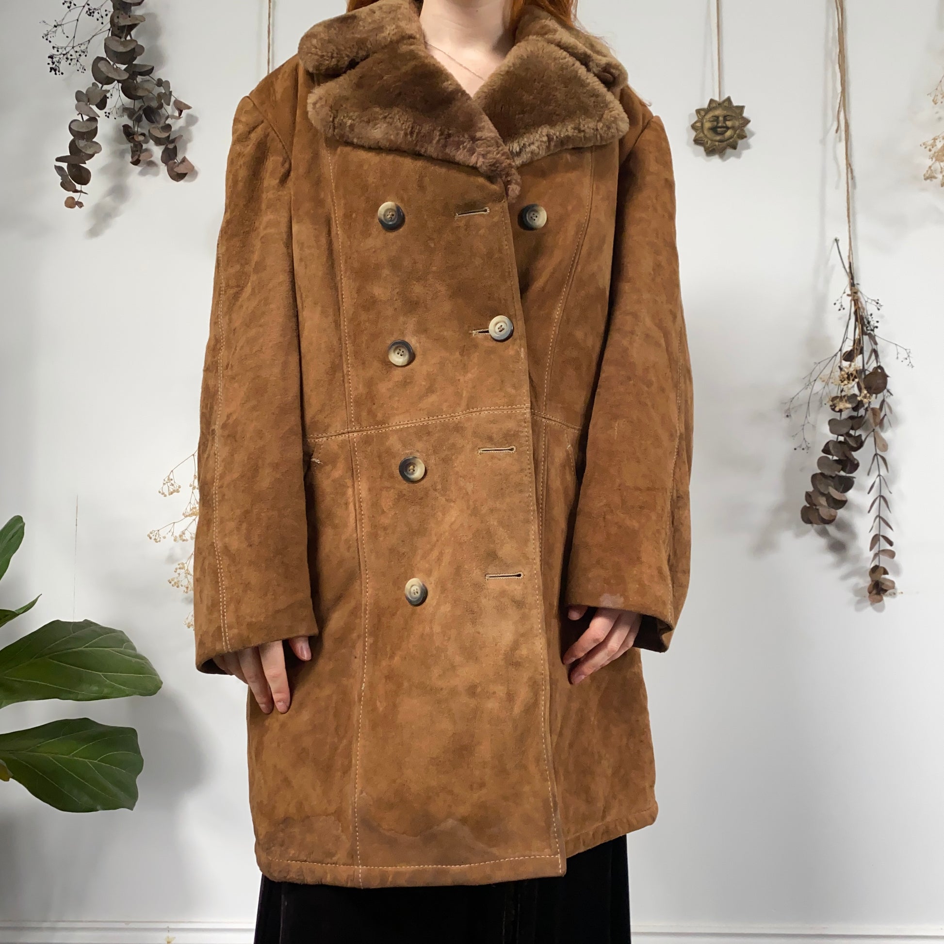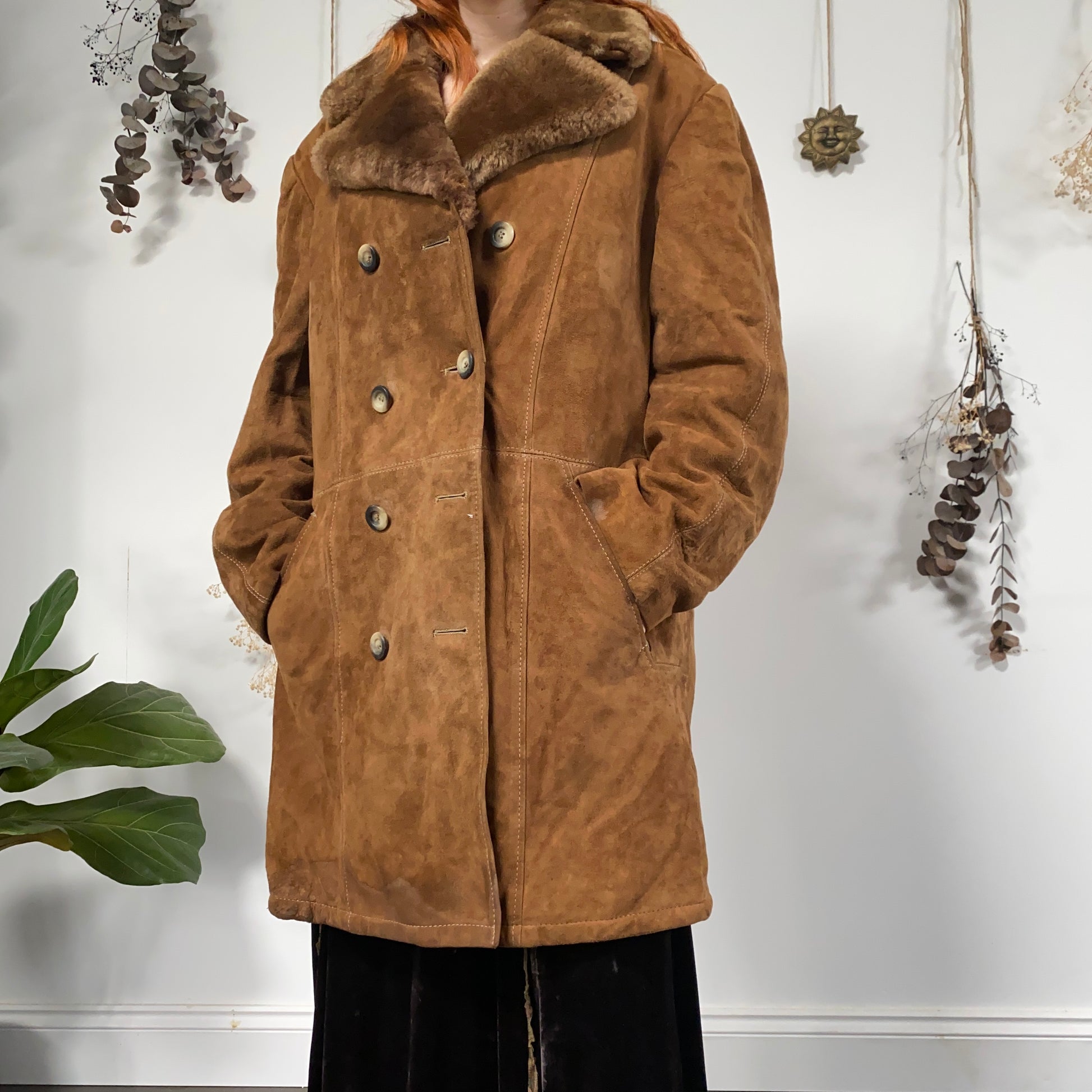 Vintage brown camel sheepskin coat