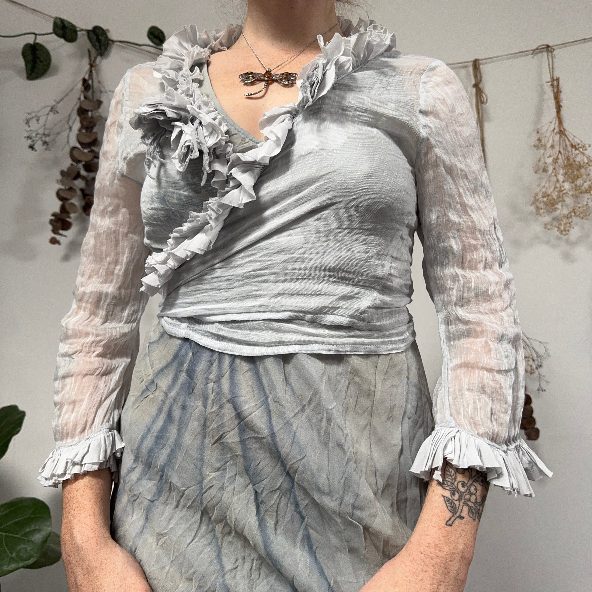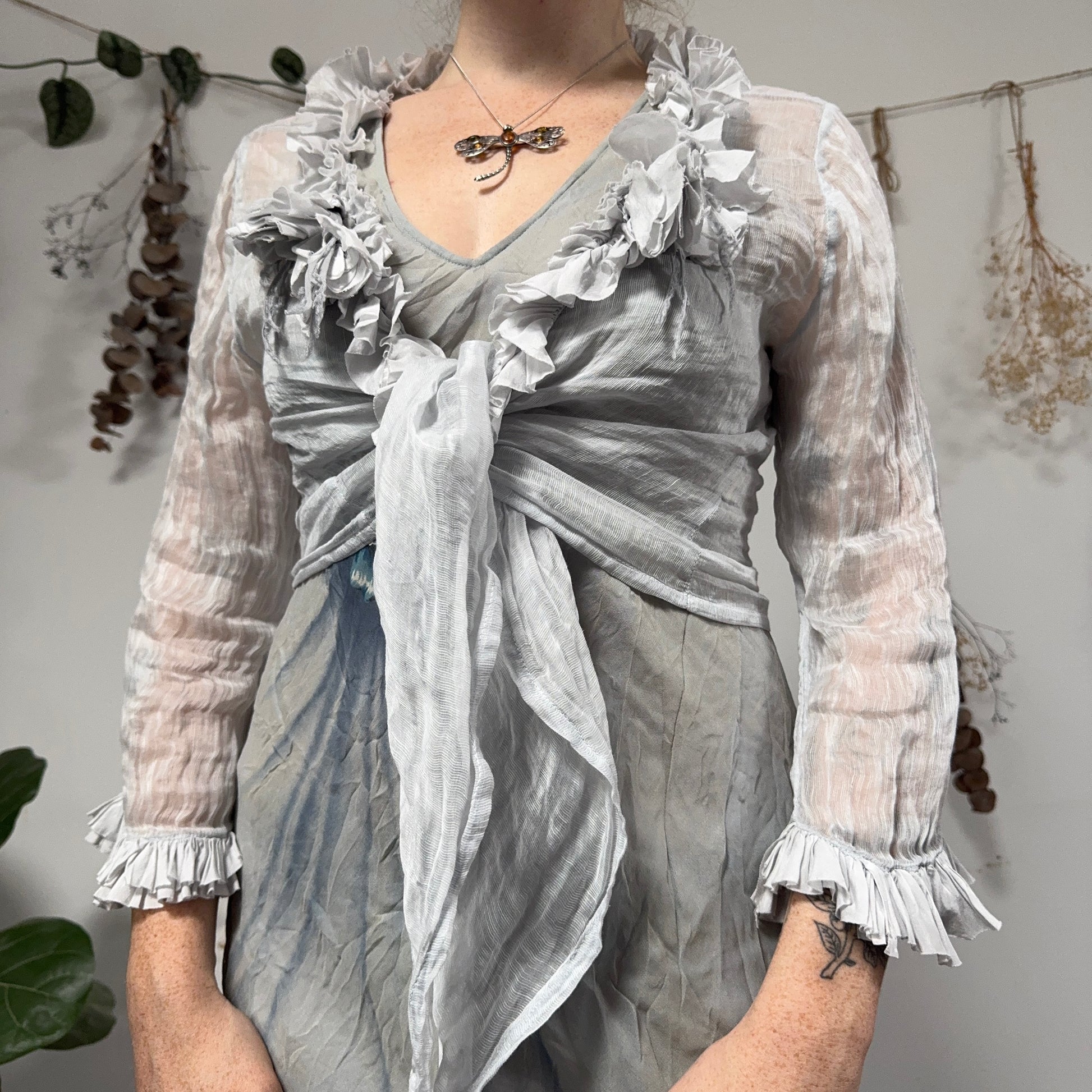 Vintage Out of Xile super pale blue delicate silk & linen blend tie bolero