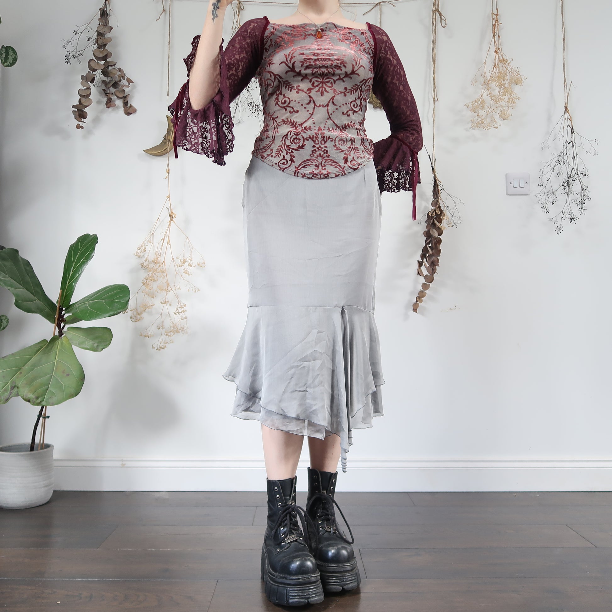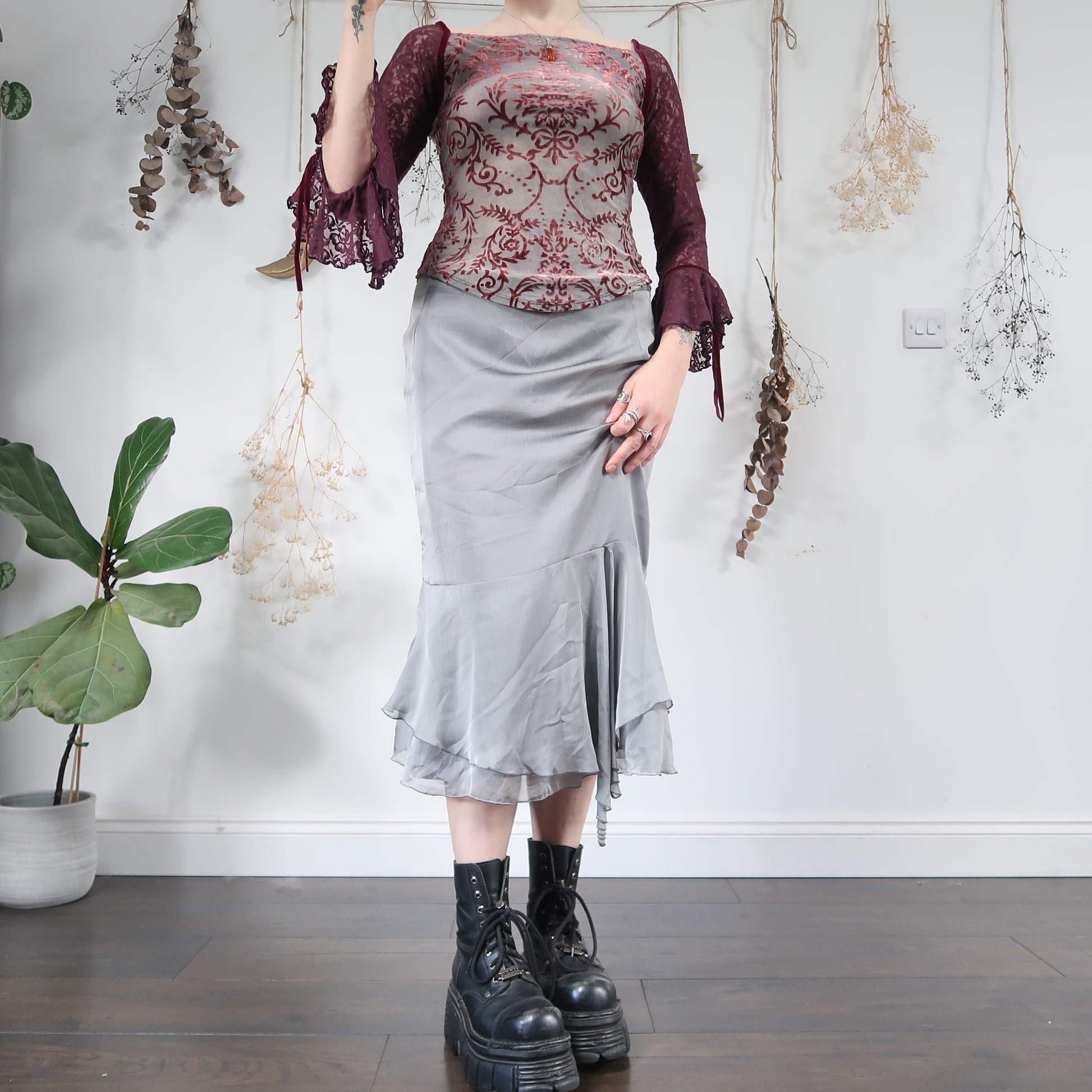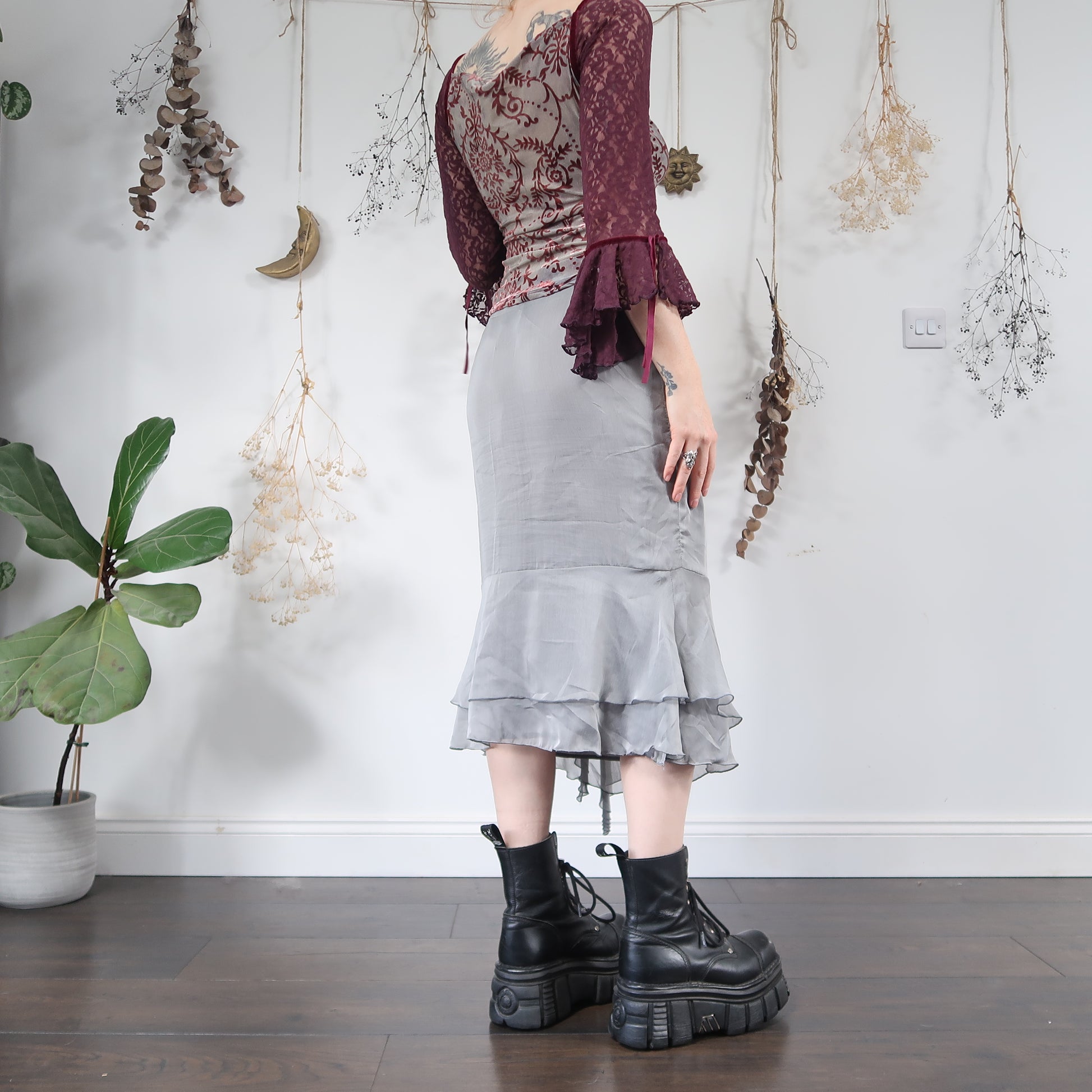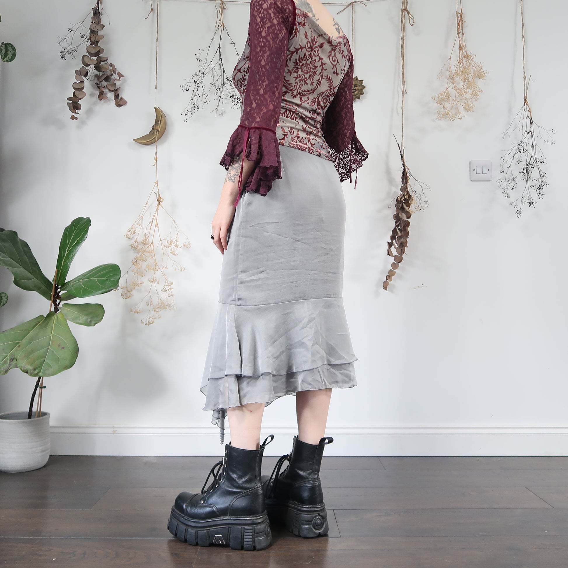 Vintage silvery grey midi skirt with a sheen to it as the fabric moves