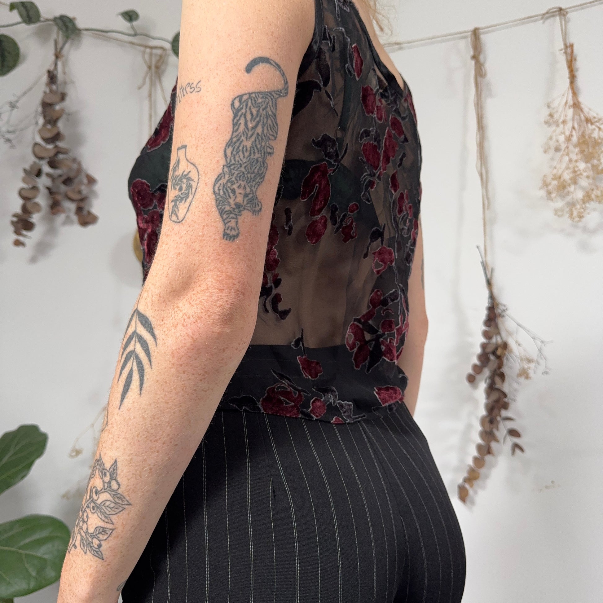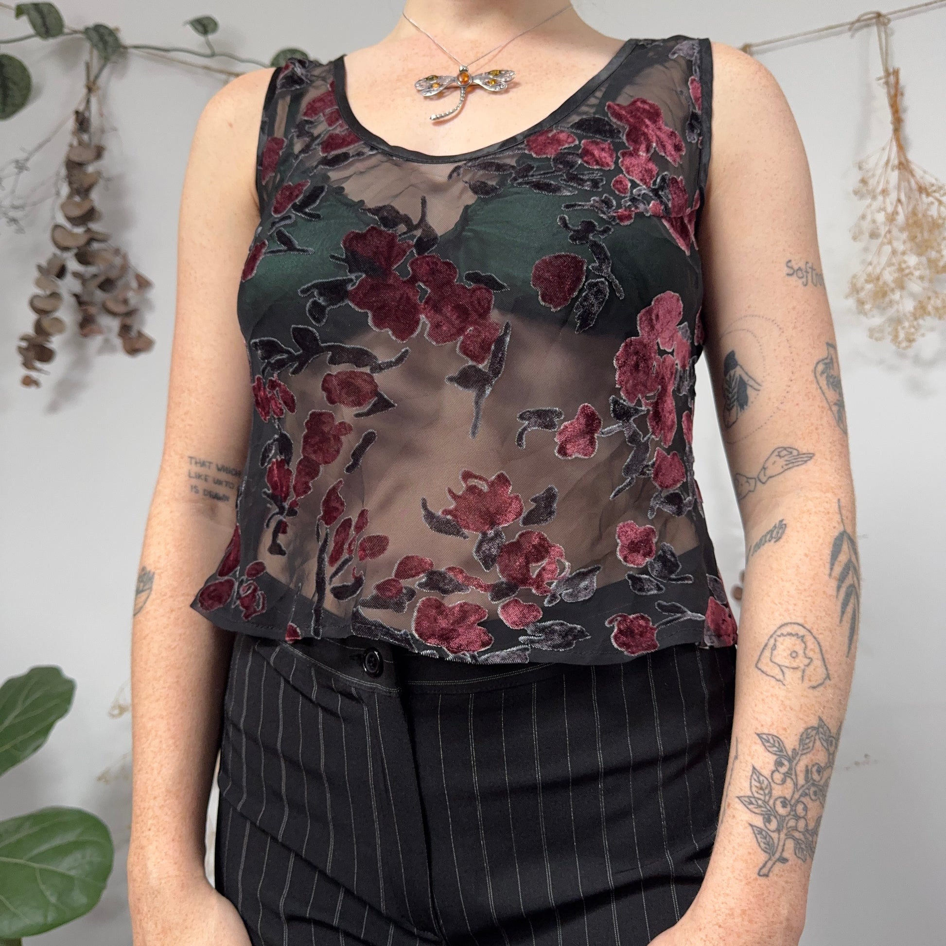 Vintage sheer velvet embossed tank top