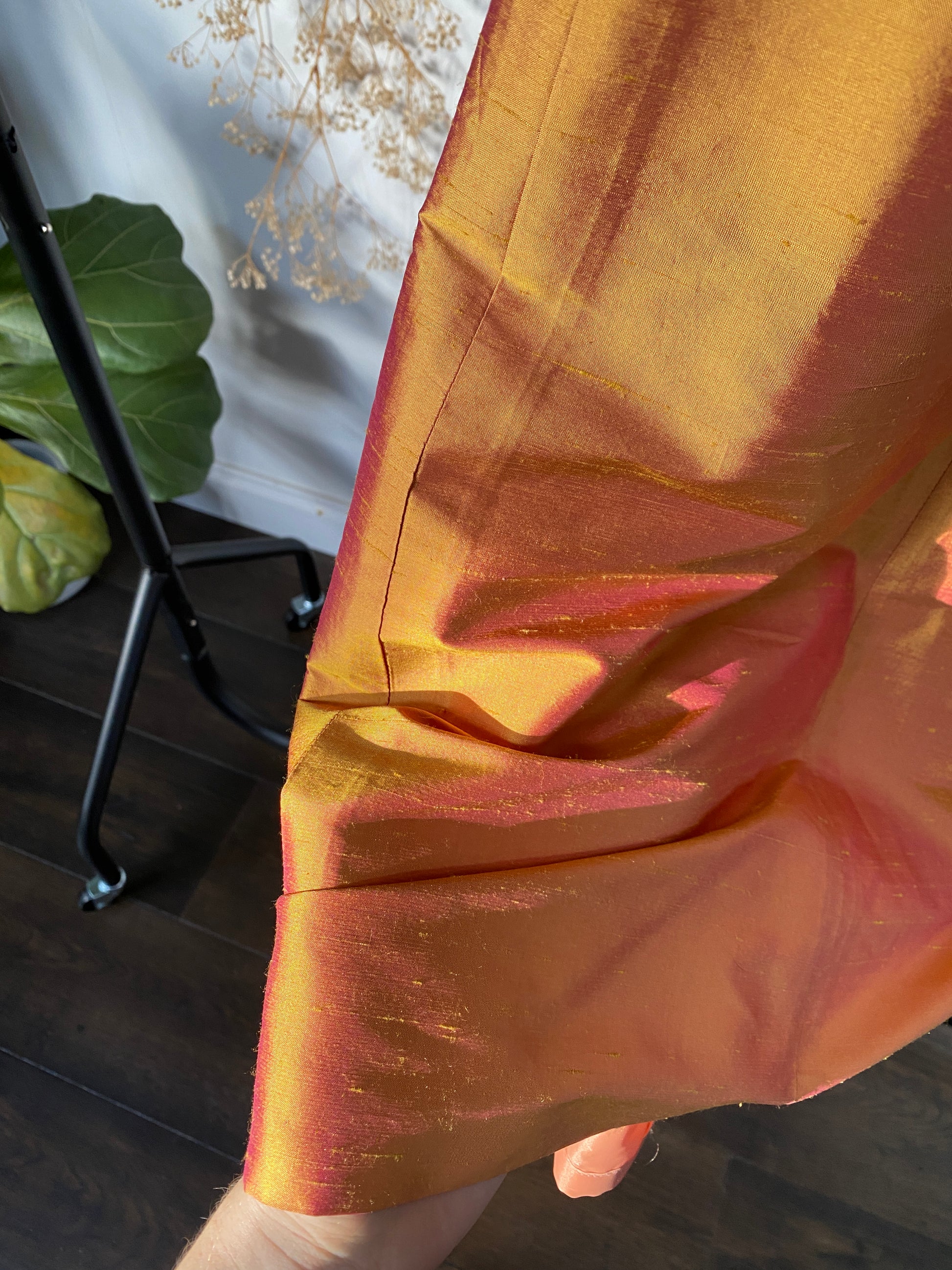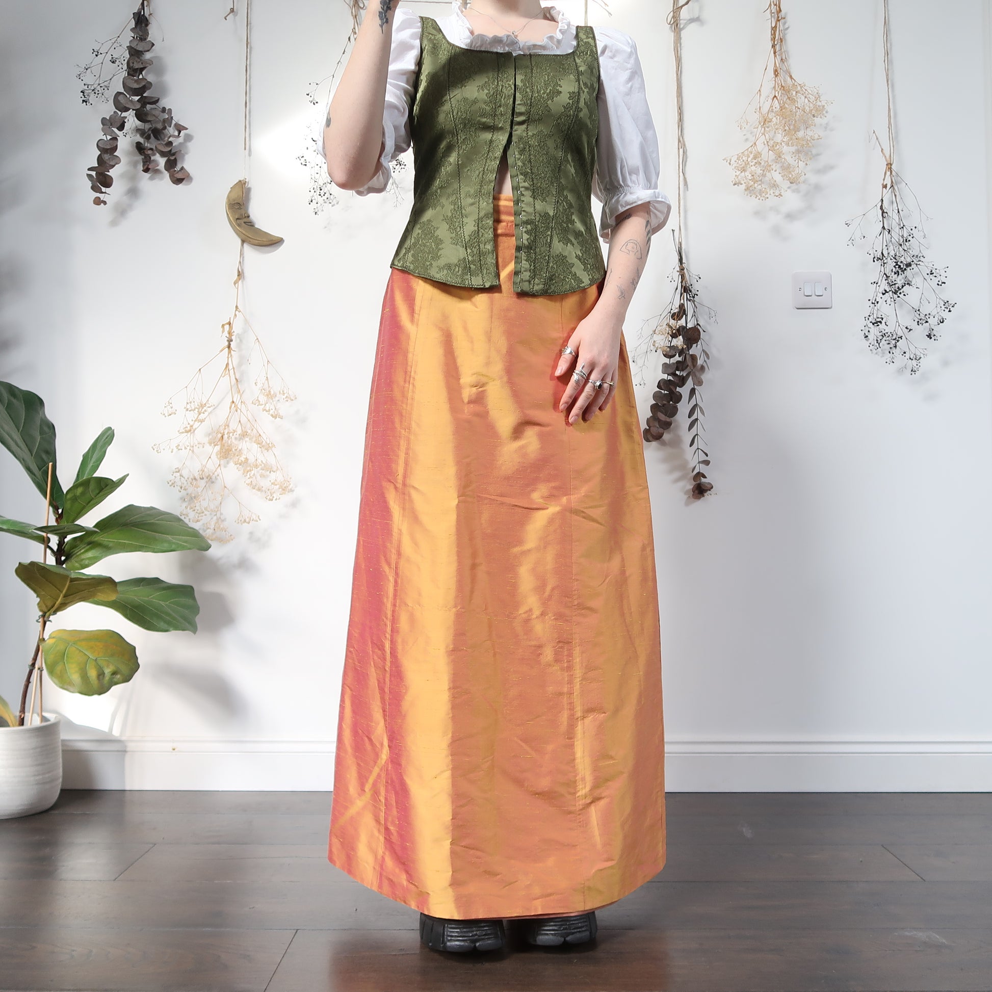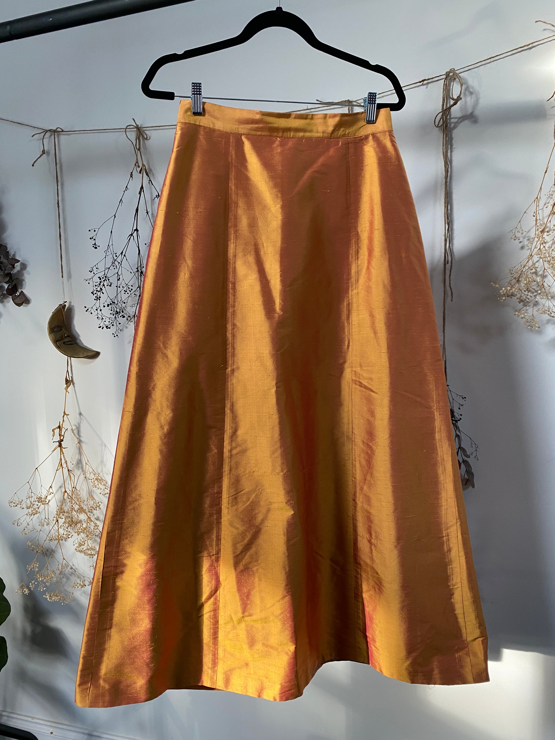 Vintage golden yellow/pink two tone maxi skirt with a matching scarf. This fabric is so beautiful